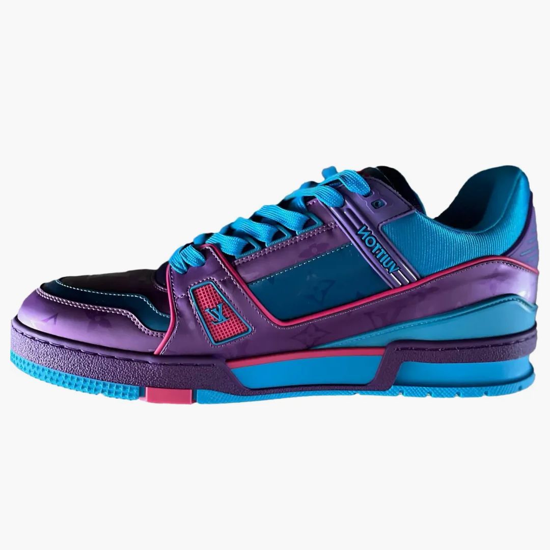 The Louis Vuitton coach in Purple Teal Metallic brings stylish shine into everyday life. In a powerful mix of purple and green, this sneaker radiates and magically attracts everyone. Designed for those who love the extraordinary, this shoe combines the highest craftsmanship and design aesthetics. Versatile in the application, it could perfectly complement both the informal outfit and the urban chic. A must for every wardrobe that relies on timeless elegance and exciting colors.Authenticity Guaranteed