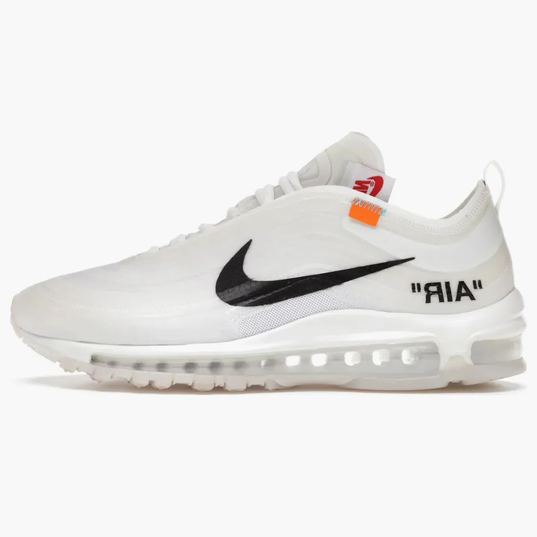 The Nike Air Max 97 Off-White is the result of an exclusive partnership between Nike and Virgil Abloh. Part of 'The 10' collection exudes this model an innovative look, which is emphasized by the use of translucent materials. The color palette of white, cone and ice blue ensures a fresh, modern look. Striking details such as the red cable tie and the green laces give the sneaker its unique character. Perfect for lovers of the Nike Air Max 97 series and fans of off-White, this couple of style combines with substantial collector's item. A must for sneaker lovers, available from Hypeneedz.Authenticity Guaranteed