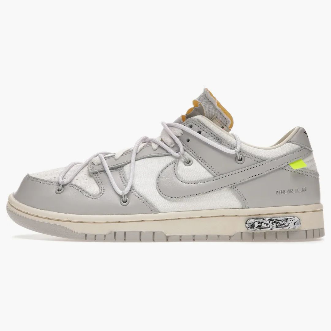 The Nike Dunk Low Off-White Lot 49 impresses with its outstanding design, which was designed as part of the 'Dear Summer' collection by Virgil Abloh. The combination of elegant sailing white, neutral gray and accents in lively colors gives the shoe an unmistakably stylish note. The model presents itself with white leather and soft canvas in gray, rounded through the iconic Swoosh and an open foam tongue. A second lacing system and the individual '49 of 50 'emblem on the middle of the side offer a unique wearing experience. The look is rounded off by special accessories: a gray ow ziptie and yellow 'off-white' paper. This sneaker is not only a tribute to Nike's legacy, but also a must-have for every collector of modern sneak culture.Authenticity Guaranteed