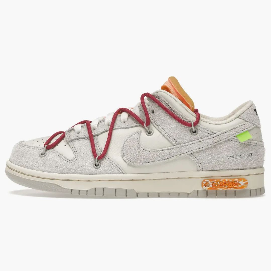 Discover the incomparable design of the Nike Dunk Low Off-White Lot 35 from the exclusive "Dear Summer" collection. This creation impresses with a harmonious mix of white leather and soft gray suede, which underlines the classic lines of the model. The details of off-White stand out stylishly-whether due to the concise text on the inside or the unmistakable lacing system in a lively red tone. An orange foam on the tongue and a green label on the brand logo set striking accents, while the springs convinces with special branding. A must for lovers of special sneakers.Authenticity Guaranteed