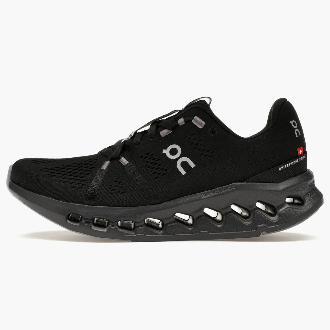 The On Running Cloudsurfer Black for women clubs style and performance in an extraordinary running shoe. This shoe inspires with its innovative damping technology, which creates a soft appearance and an explosive kick -off. Flexible and light, the cloud surface offers optimal comfort with every step. The timeless black look fits perfectly with every outfit, whether when running in the park or doing the daily errands. With the On Running Cloudsurfer, every run becomes an elegant experience that convinces both ambitious runners and leisure joggers.Authenticity Guaranteed