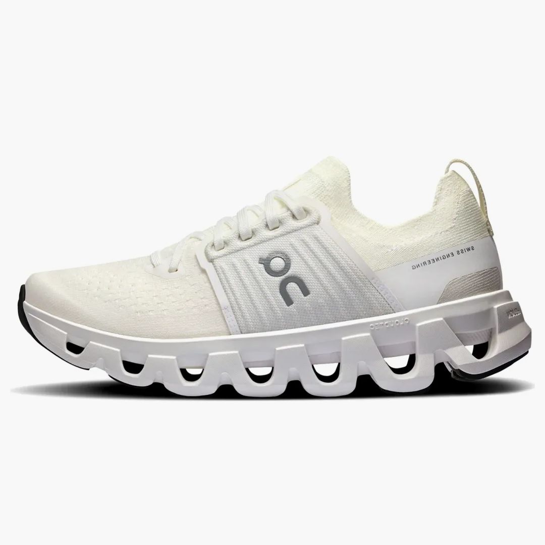 The On Running Cloudswift 4 in all White for women clubs style and functionality with their advanced damping technology, ideal for urban adventures. The light and breathable design ensures optimal comfort with every step. The seamless construction and the clear color design make this shoe a versatile companion, which gives both sporty and casual outfits the finishing touch. Perfect for dynamic days when no compromises are desired.Authenticity Guaranteed