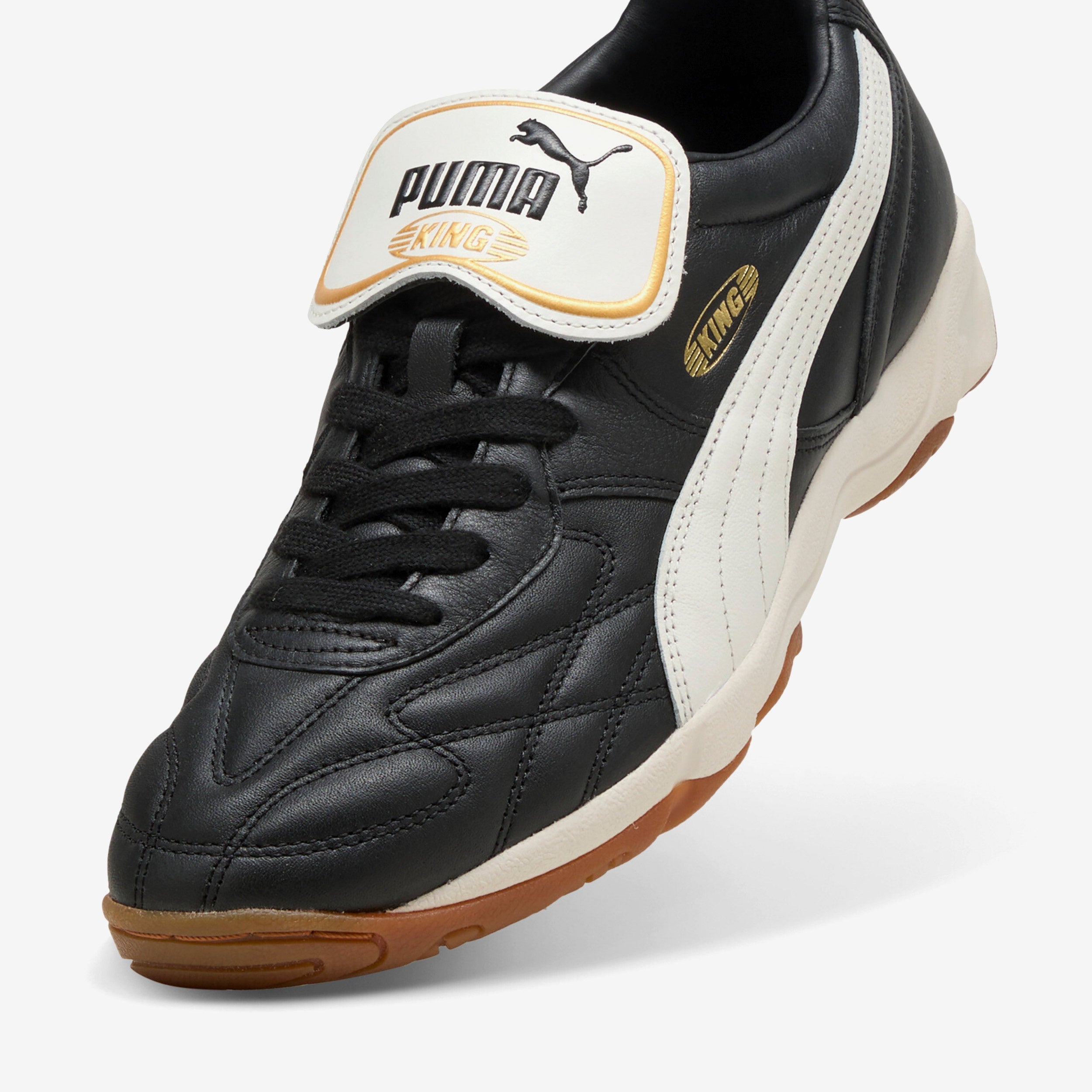 PUMA dives into its deep archives once again to reintroduce a true Futsal icon, the King Indoor. After making its first appearance in 1999, the PUMA King Indoor transcended the world of street cages and indoor courts with its premium leather upper, flat woven laces, cutout lace holder, and durable rubber sole, while the football-inspired deco stitching throughout the upper and fold-over tongue round off the classic design alongside gold foiled PUMA logos.