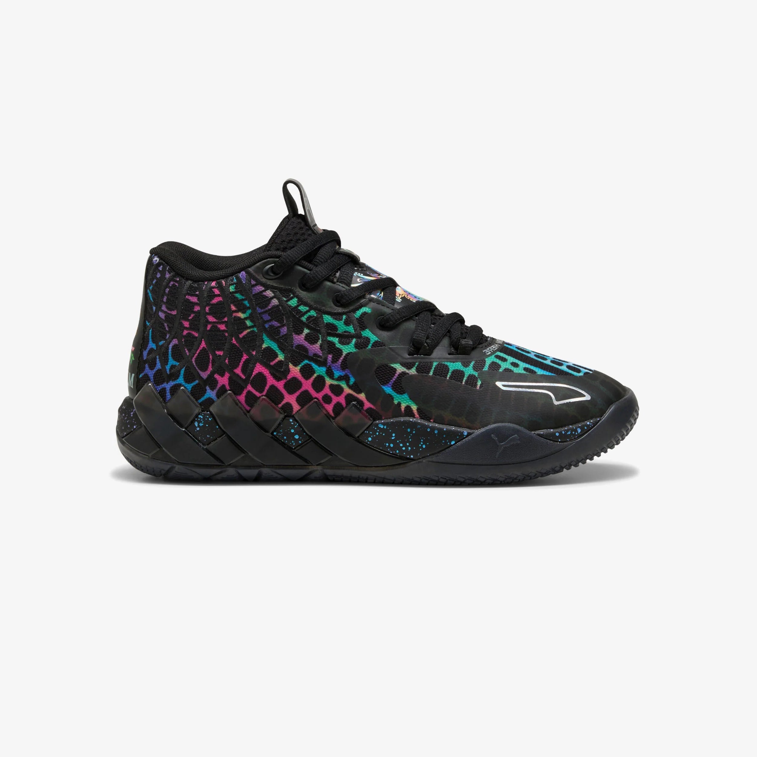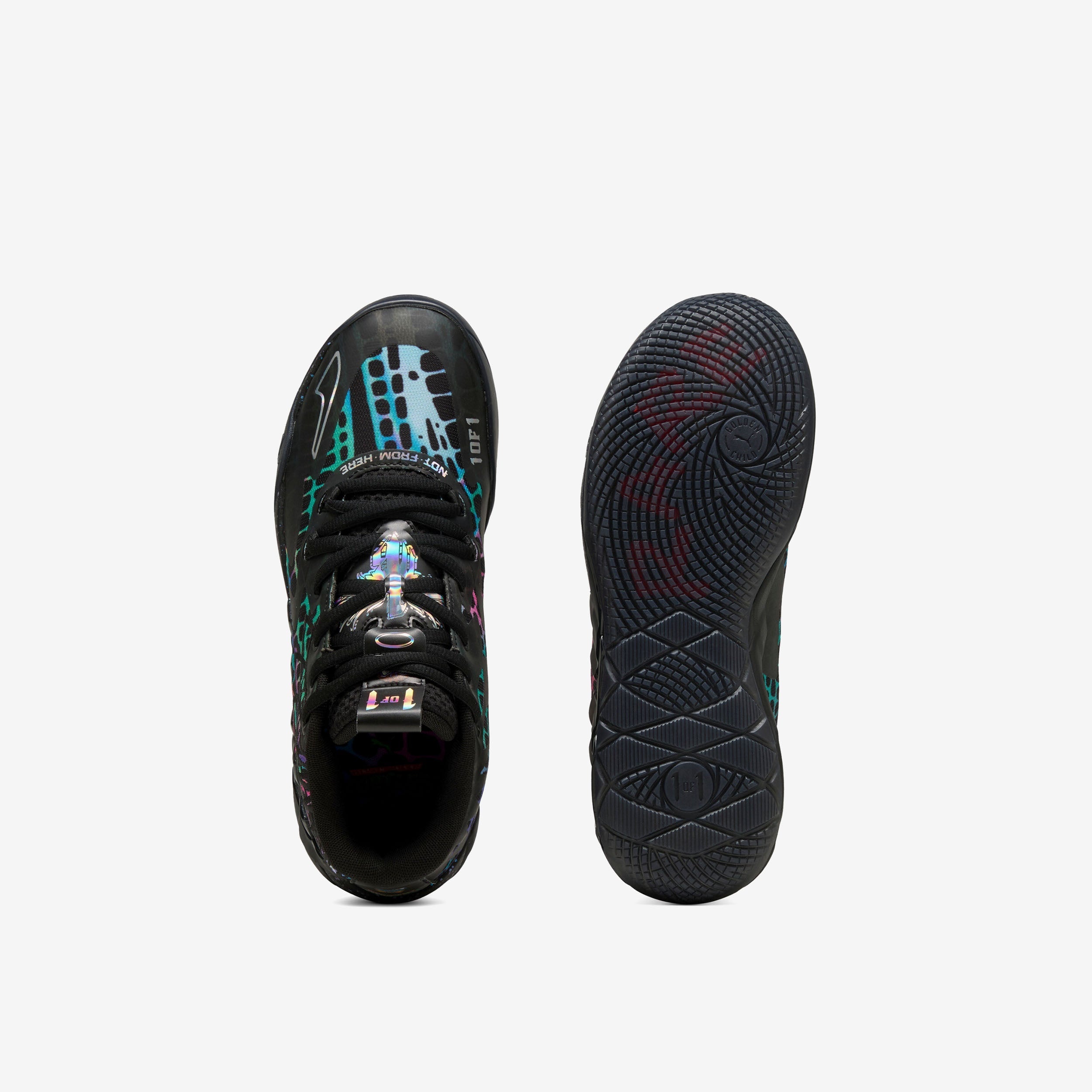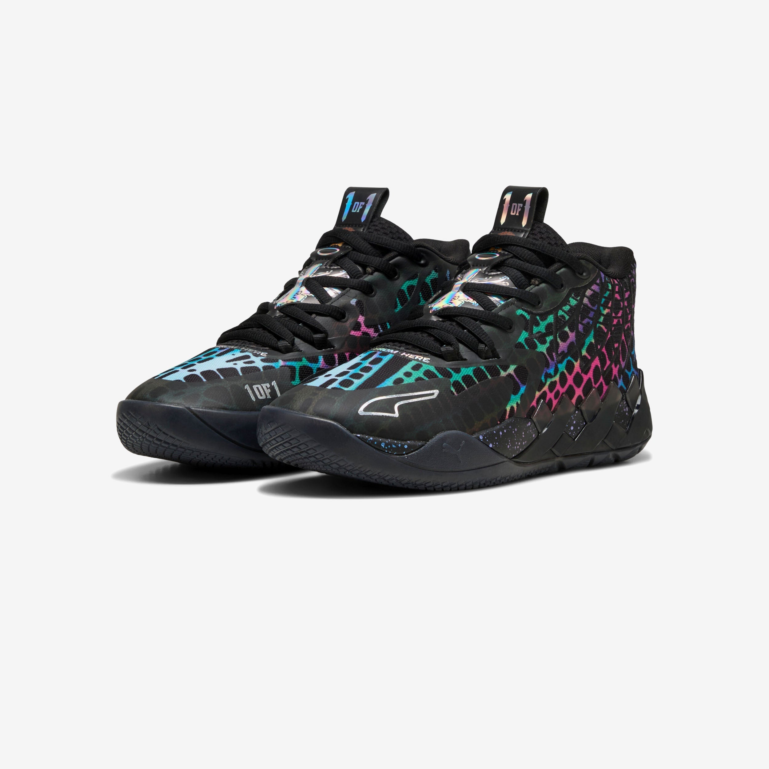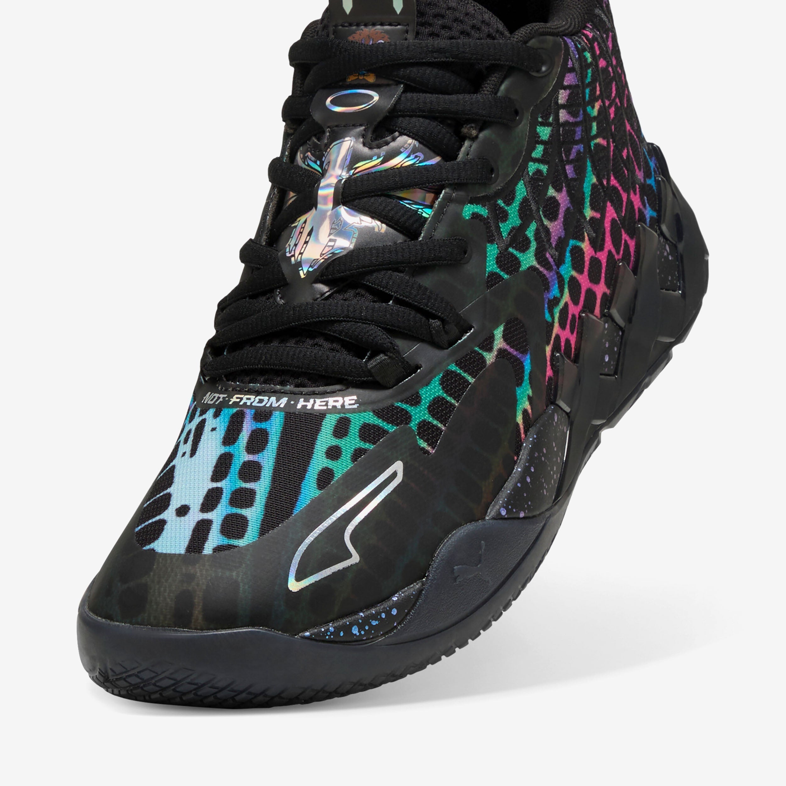 From deep within New York City's gritty underground sewers, PUMA brings everyone’s favorite pizza-loving, skateboarding, crime-fighting team: the Teenage Mutant Ninja Turtles, to the surface with this brand-new edition of the PUMA MB.01. This collab, which sees one of Melo’s signature shoes taken over by the Turtles and some of their fiercest foes, covers the MB.01 in the shimmering pattern of the half-man, half-fly mad scientist, Baxter Stockman, while the NITROFOAM™ tech allows you to protect the city at night in complete comfort.