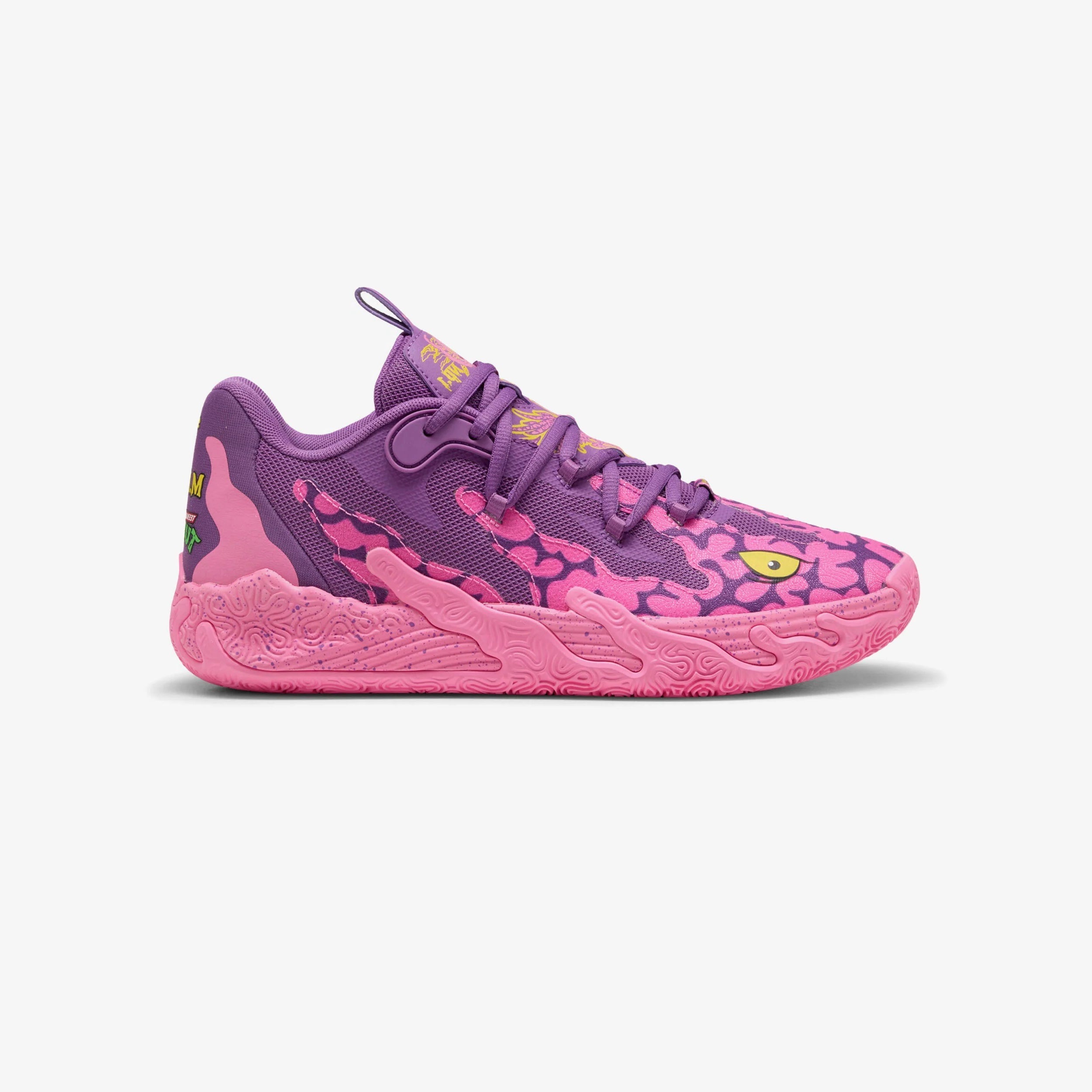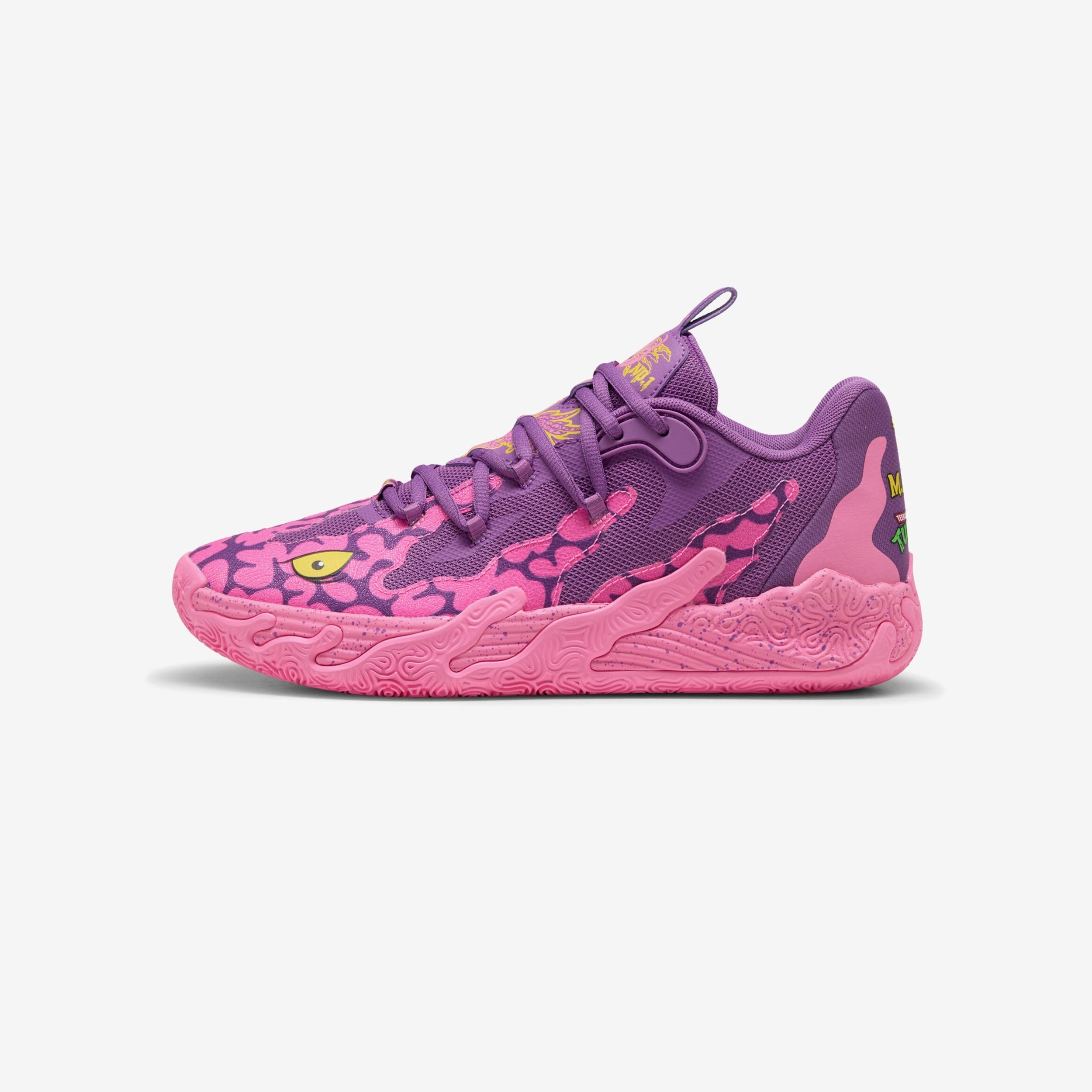 From deep within New York City's gritty underground sewers, PUMA brings everyone’s favorite pizza-loving, skateboarding, crime-fighting team: the Teenage Mutant Ninja Turtles, to the surface with this brand-new edition of the PUMA MB.03 Lo. This collab, which sees one of Melo’s signature shoes taken over by the Turtles and some of their fiercest foes, brings an extra-terrestrial vibe through the alien supervillain Krang! Covered in Krang’s alien texture and his yellow eyes at the toe, this edition of the PUMA MB.03 Lo features ultra-supportive NITROFOAM™ for stability and comfort when protecting the city late at night.