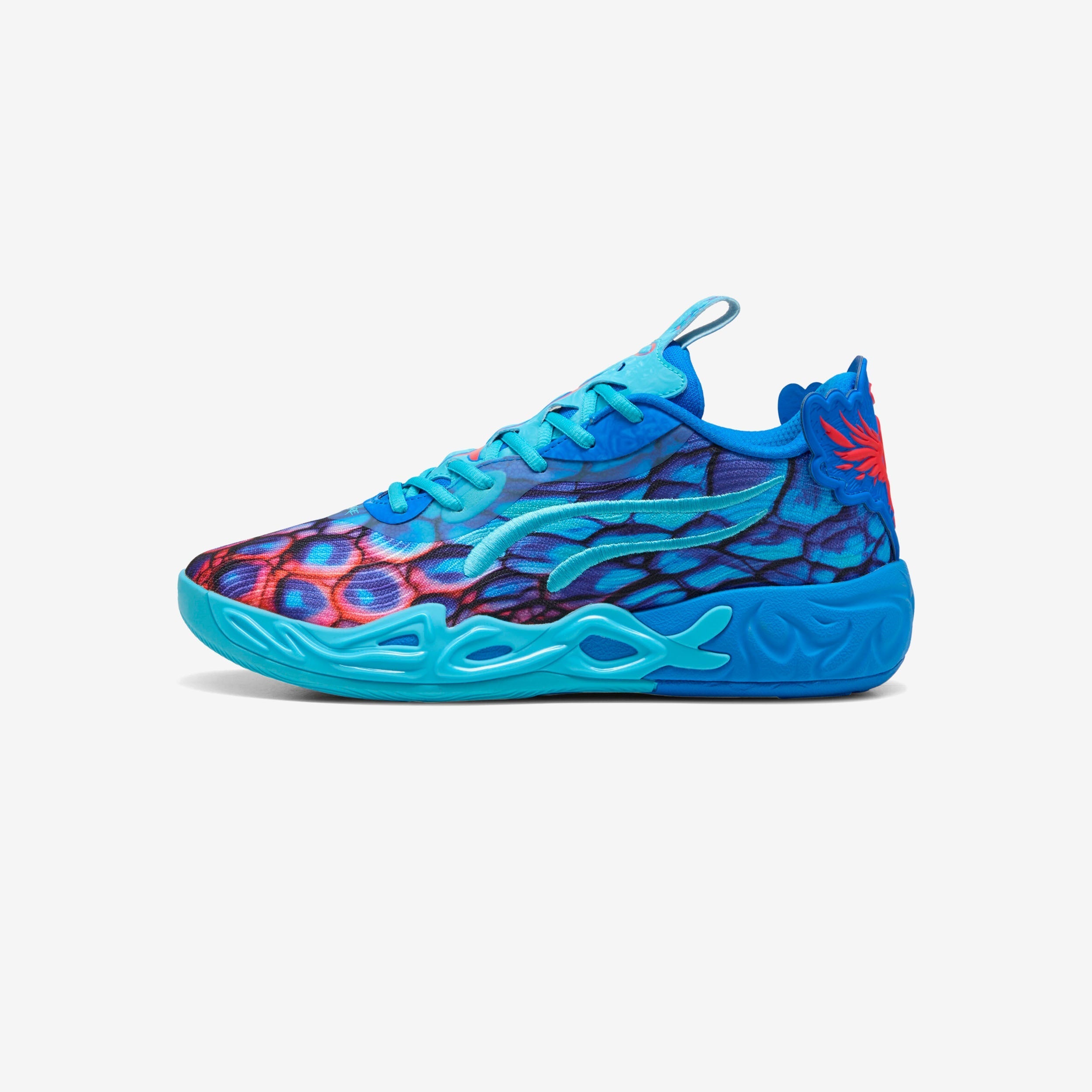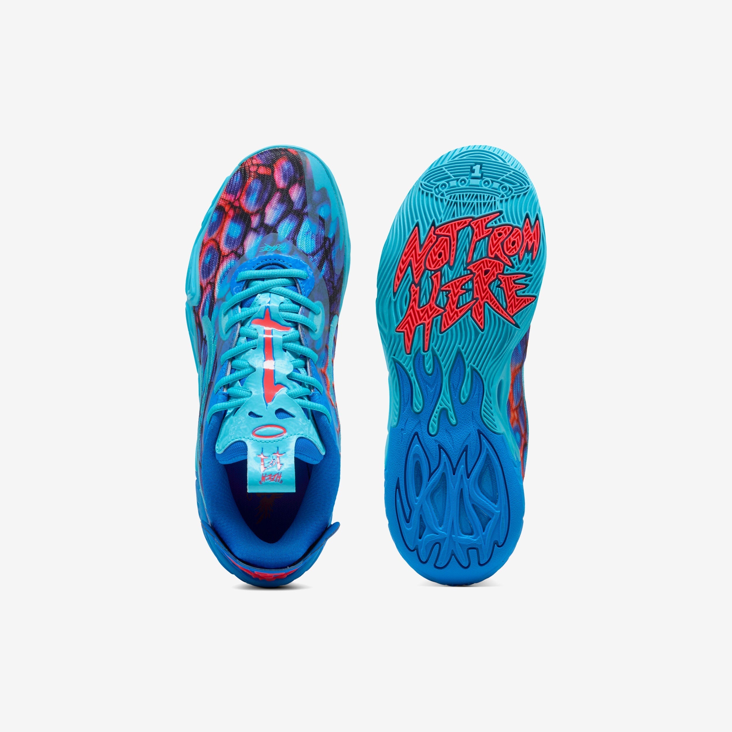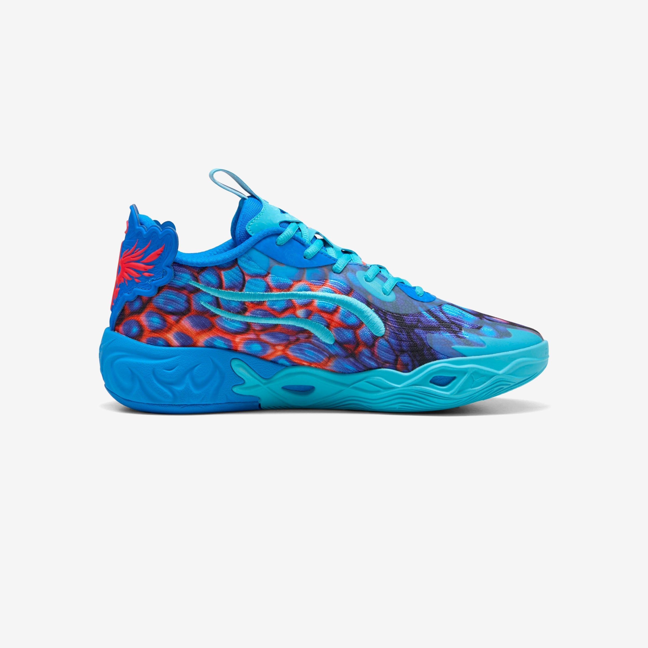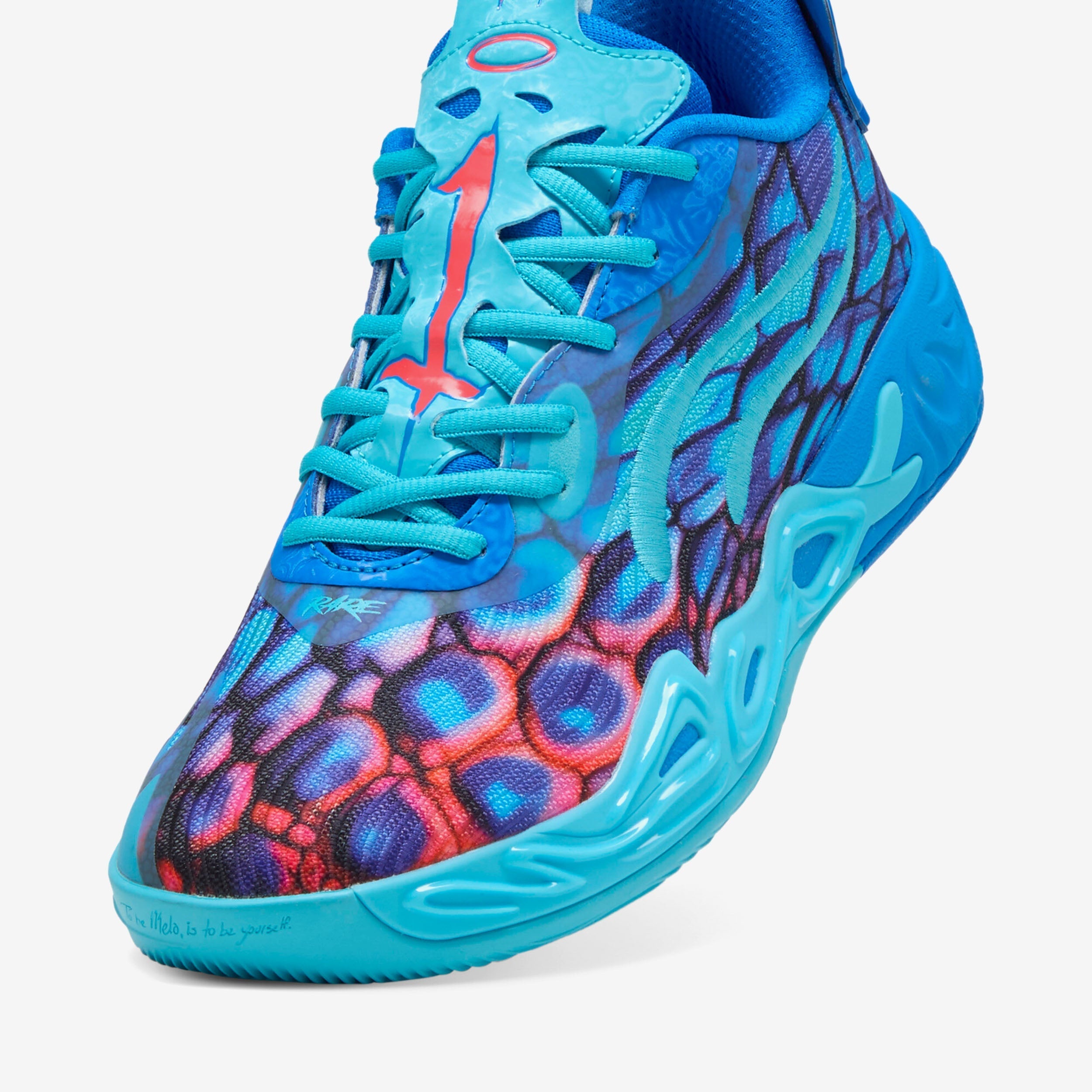 LaMelo Ball is not of this Earth – but fortunately, he comes in peace. The latest edition of the PUMA MB.04 takes inspiration from Melo’s otherworldly style of play, wrapping the silhouette in an eye-catching alien texture with the Melo wing logo wrapped around the heel. This extra-terrestrial design is complemented by a supportive double-layered mesh upper and NITROFOAM™ cushioning for on-court power, while the new tongue and custom heel finish off the look.