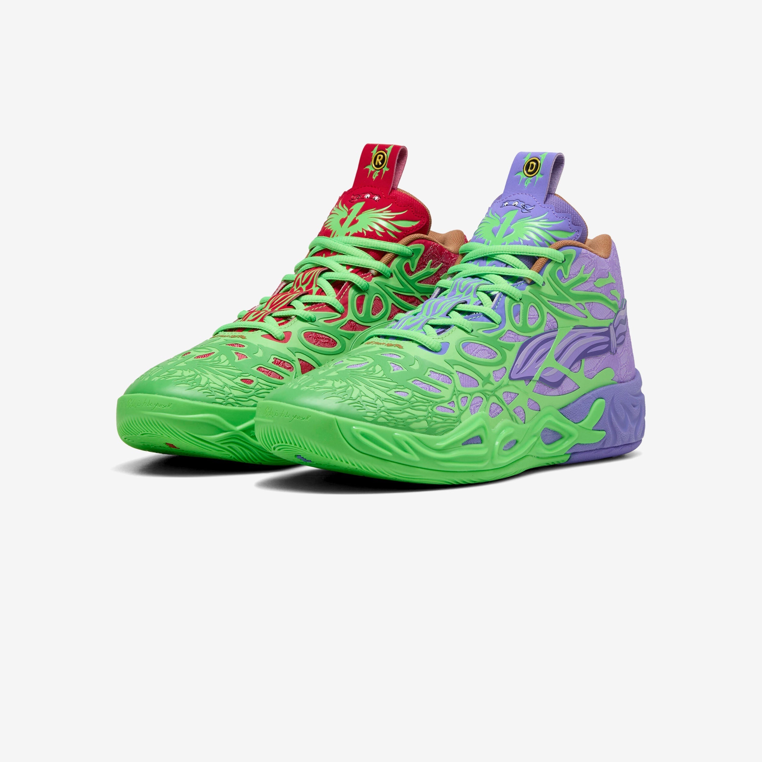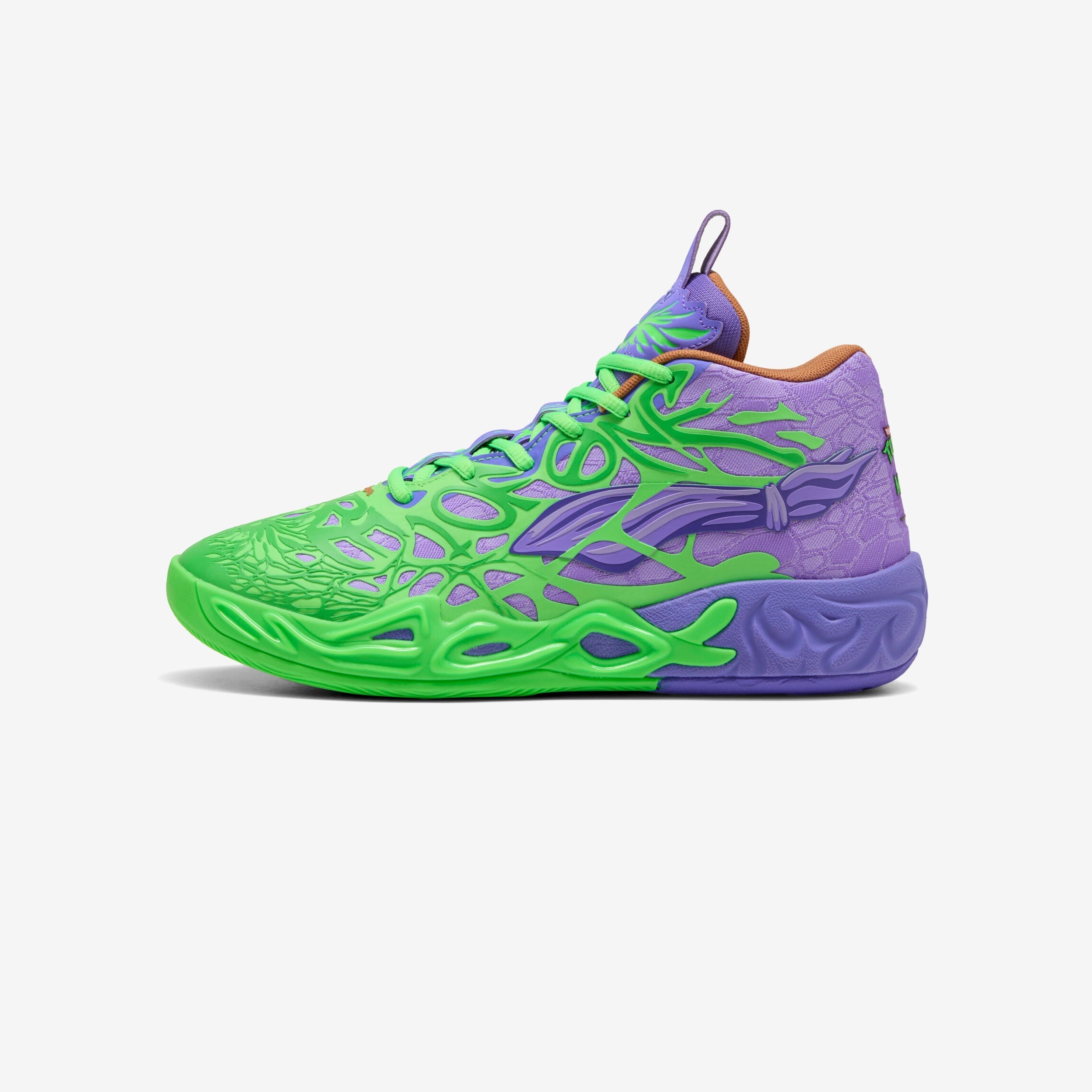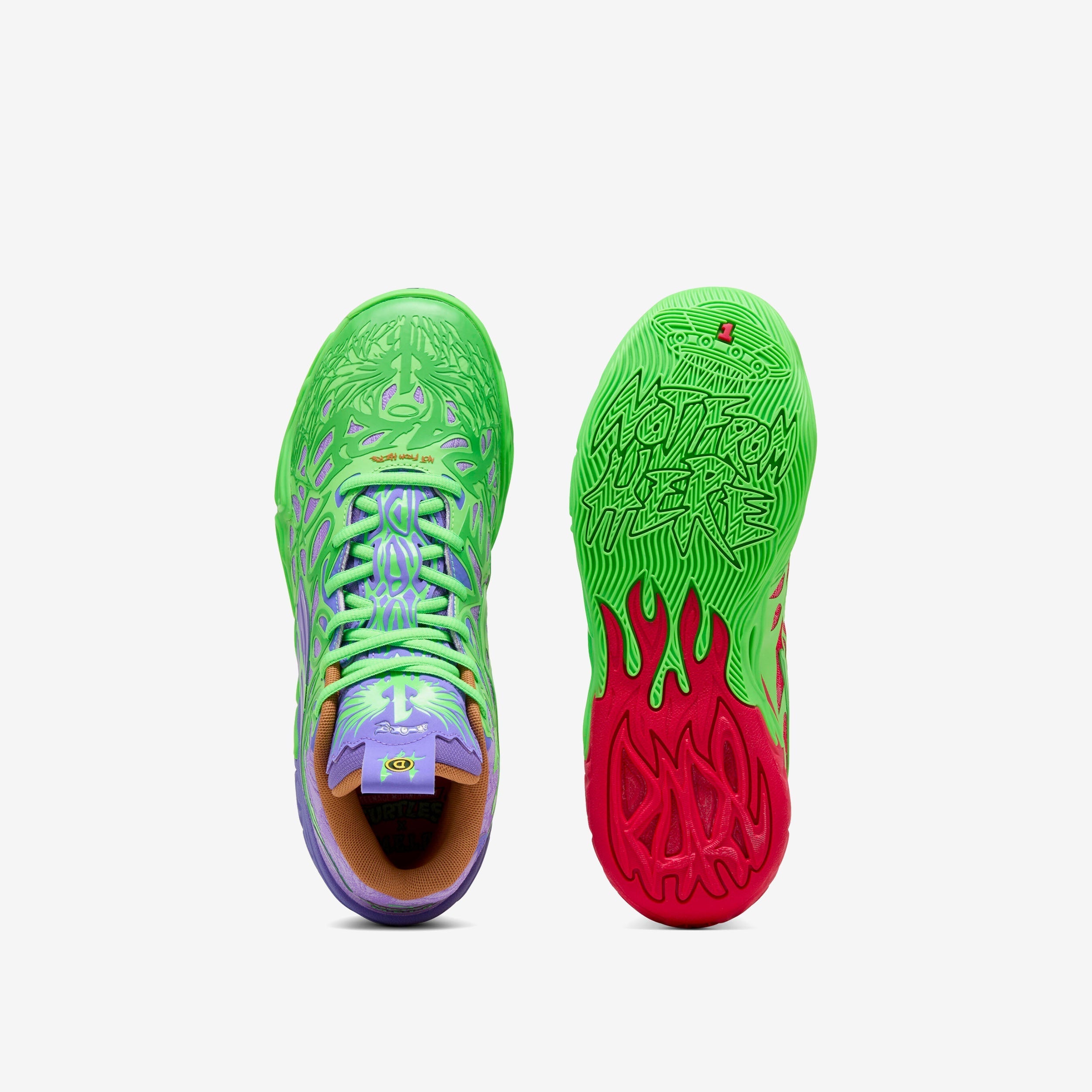 From deep within New York City's gritty underground sewers, PUMA brings everyone’s favorite pizza-loving, skateboarding, crime-fighting team: the Teenage Mutant Ninja Turtles, to the surface with this brand-new edition of the PUMA MB.04. This collab, which sees one of Melo’s signature shoes taken over by the Turtles and some of their fiercest foes, features the smartest and toughest members of the turtle team: Donatello and Raphael. One pair features Raph’s signature red, while the other has Donnie’s iconic purple. Complete with a supportive double-layered mesh upper and NITROFOAM™ cushioning for on-court power, these shoes are ready to hit the streets.