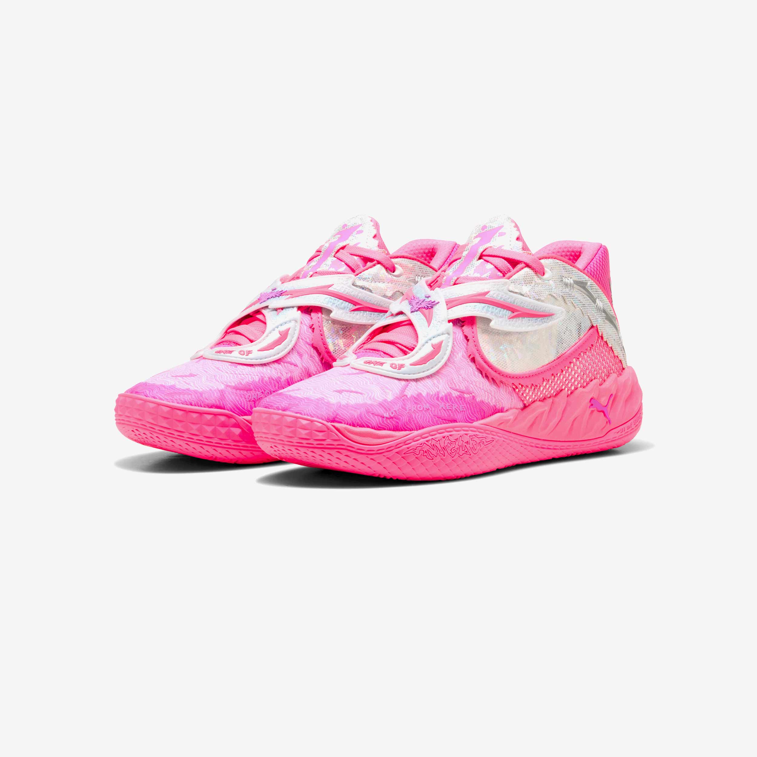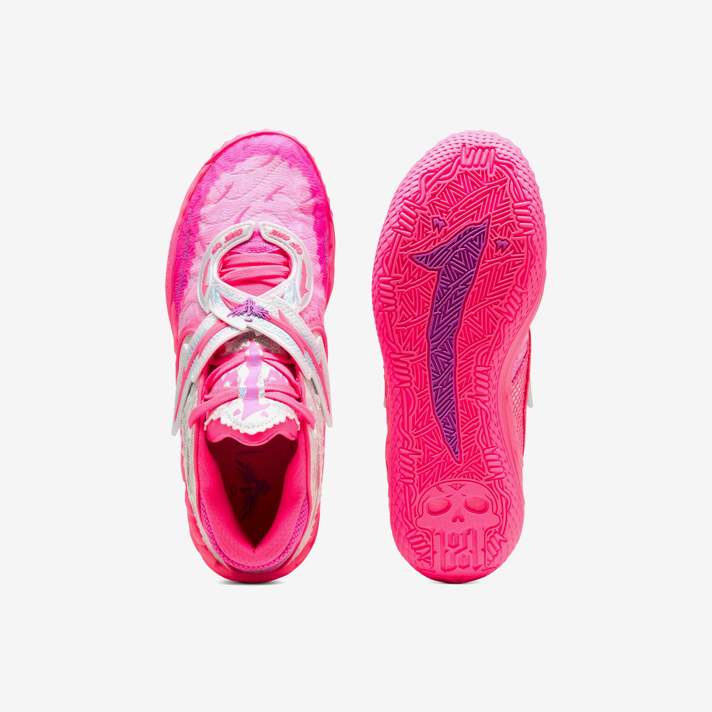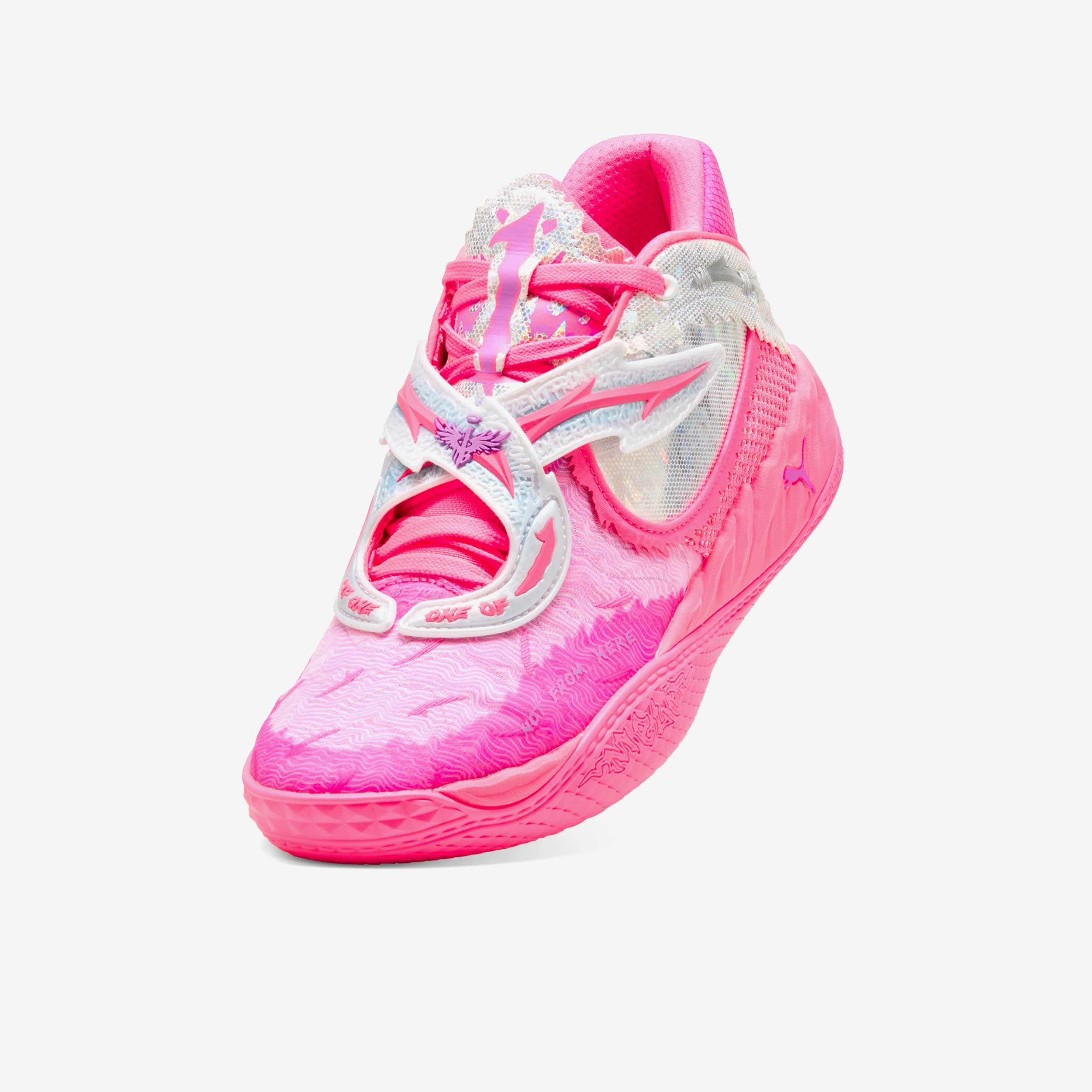 Melo doesn’t just play basketball – he hoops. He plays like he’s never been coached. Like he’s in his own world. Just pure instinct and flow. His latest signature shoe, the MB.05, is inspired by Melo’s rockstar status on the court. Arriving in a hot pink colorway, this "World Tour" edition of the PUMA MB.05 stands out with iridescent molded barbed wire inspired by Melo’s tattoos and a repeating ‘1’ pattern to reinforce Melo’s 1-of-1 status. Finished off with NITROFOAM™ cushioning for sustained on-court dominance, the MB.05 is made for you to embrace your own 1 of 1.