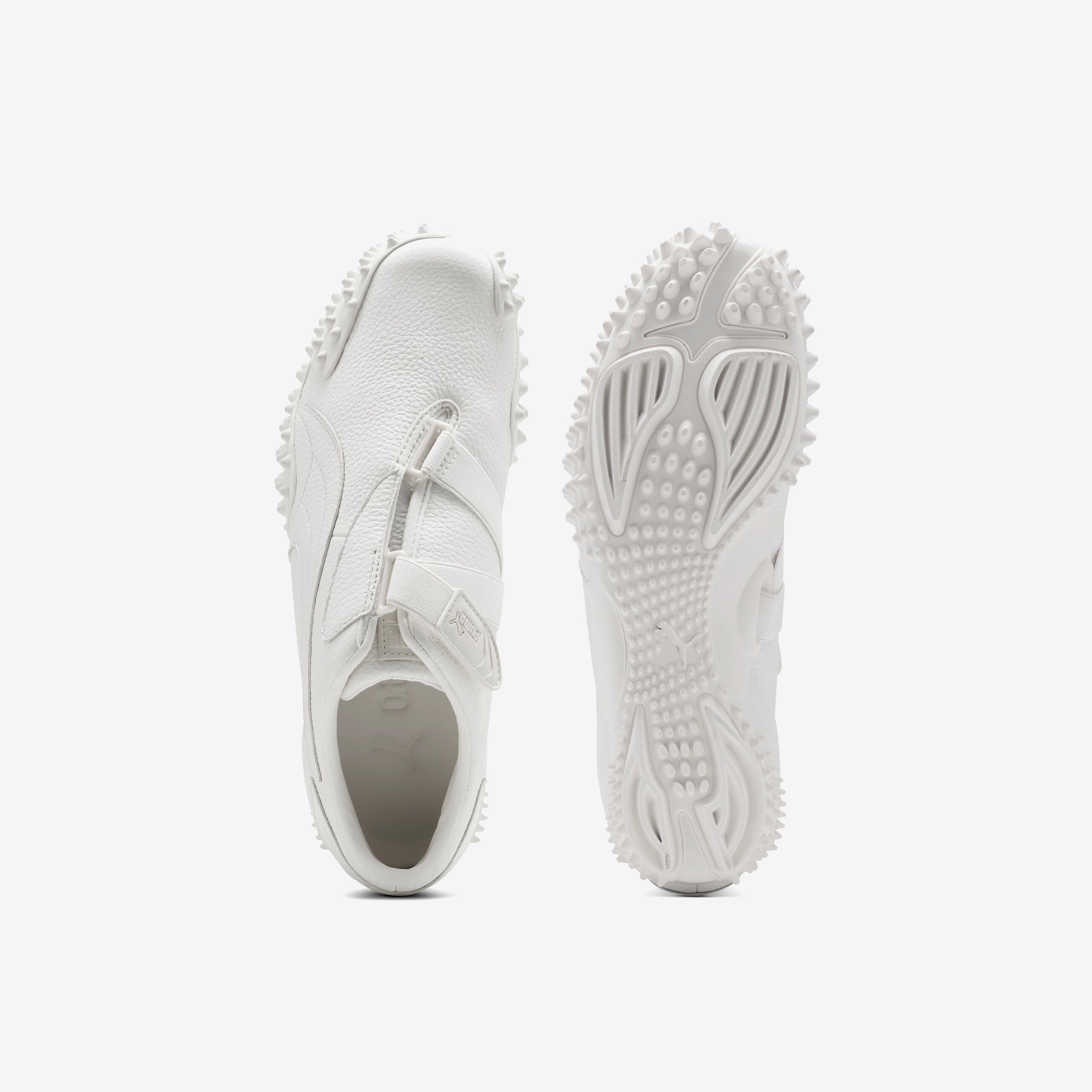 After making its long-awaited return in 2024, the PUMA Mostro continues to own the spotlight with this brand-new Leather iteration, merging its classic design with fresh fabrics and signature PUMA detailing. Taking its name from the Italian word for monster, the PUMA Mostro Leather draws inspiration from two diverse realms: the sleek sprinting spikes of the ‘60s and the surfing shoes of the ‘80s. This edition combines a crisp leather upper with an elasticated hook-and-loop closure, while the silhouette's distinct rubber outsole with spike design details wraps around the base.