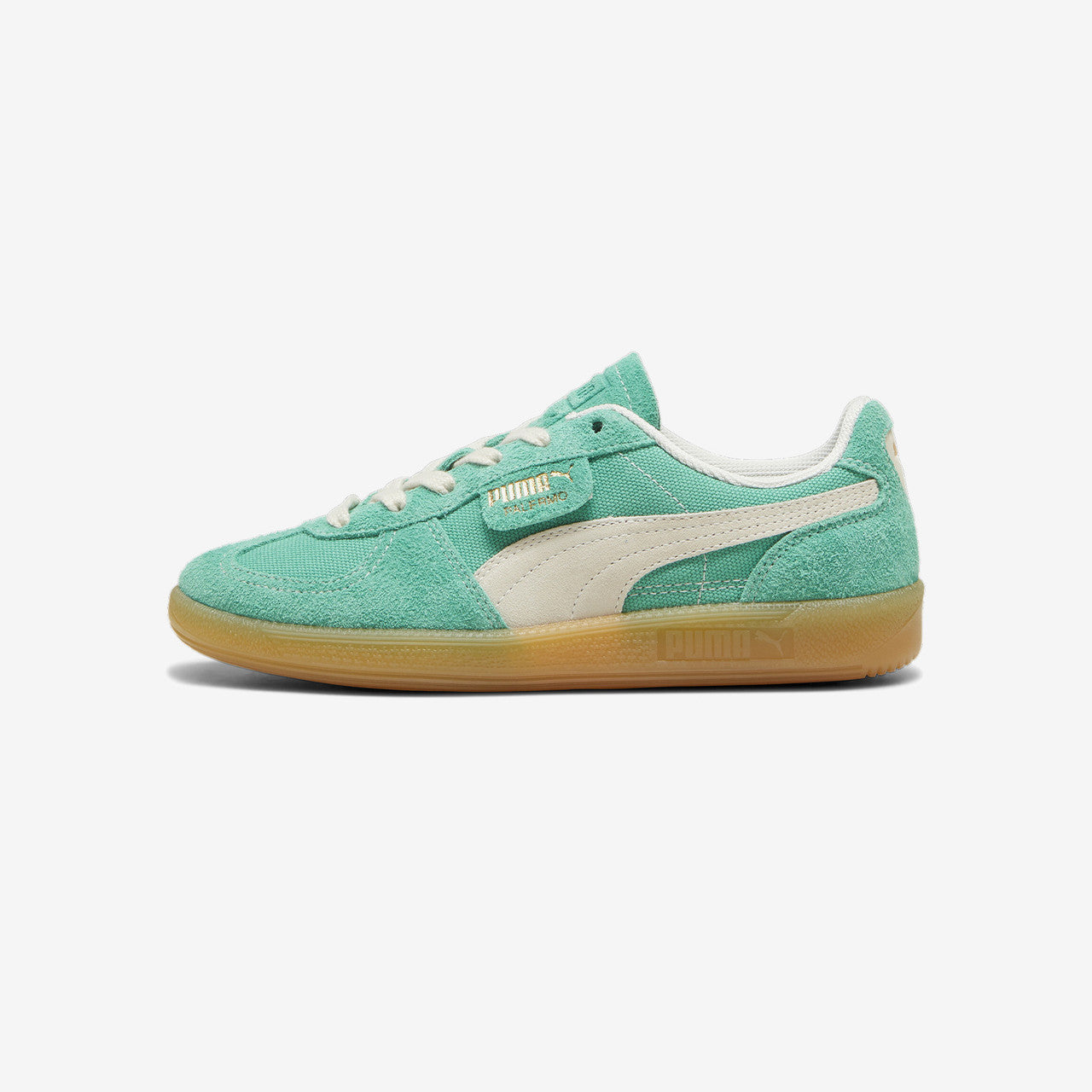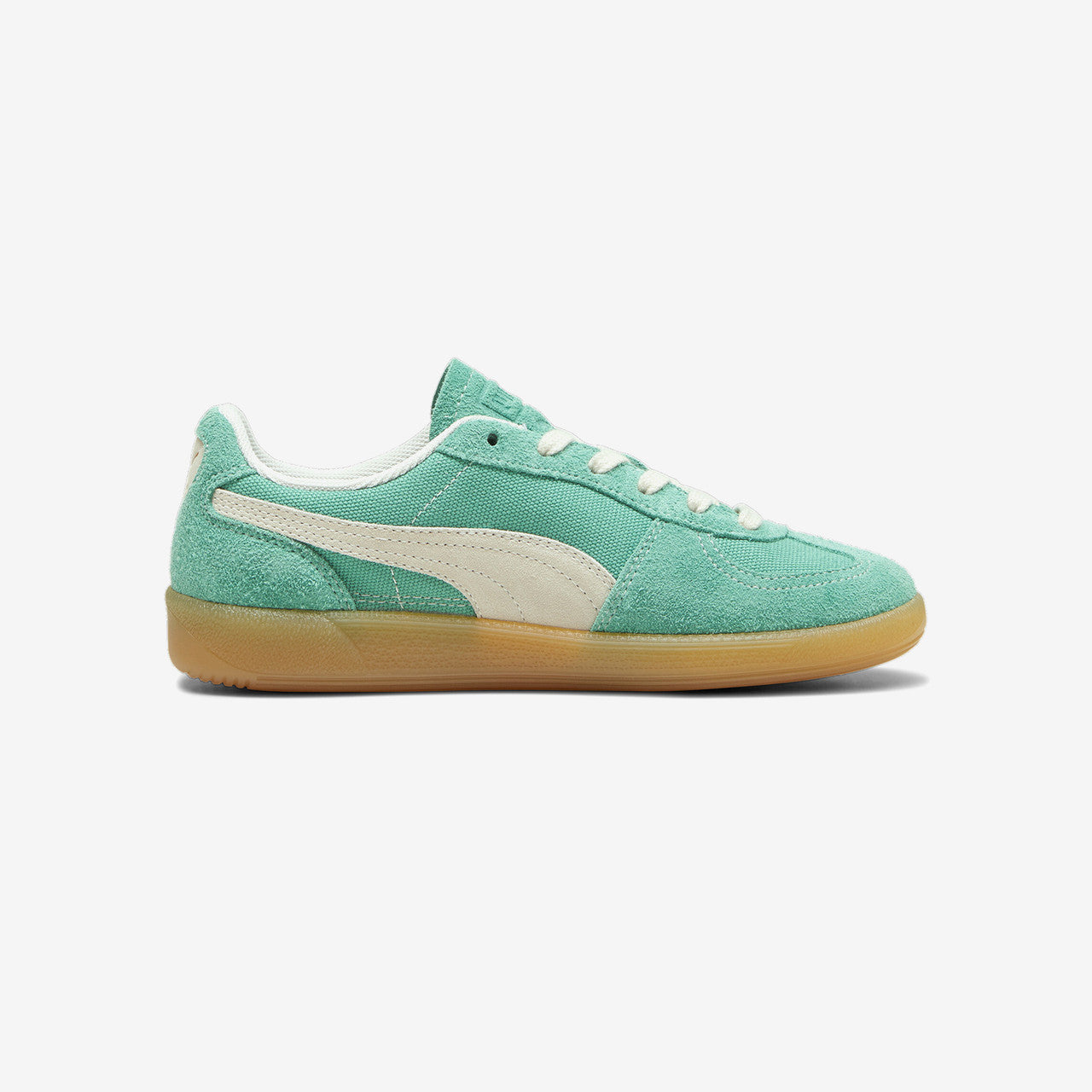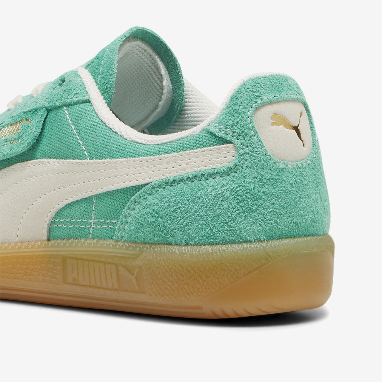 Lace up in an icon with the Puma Palermo Vintage. Yet another classic to return from Puma's archives, the Palermo Vintage originally debuted in the 80's and is now back in a "Jade" colourway, combining its signature T-toe construction and classic gum sole with a premium textile upper and plush suede overlays.