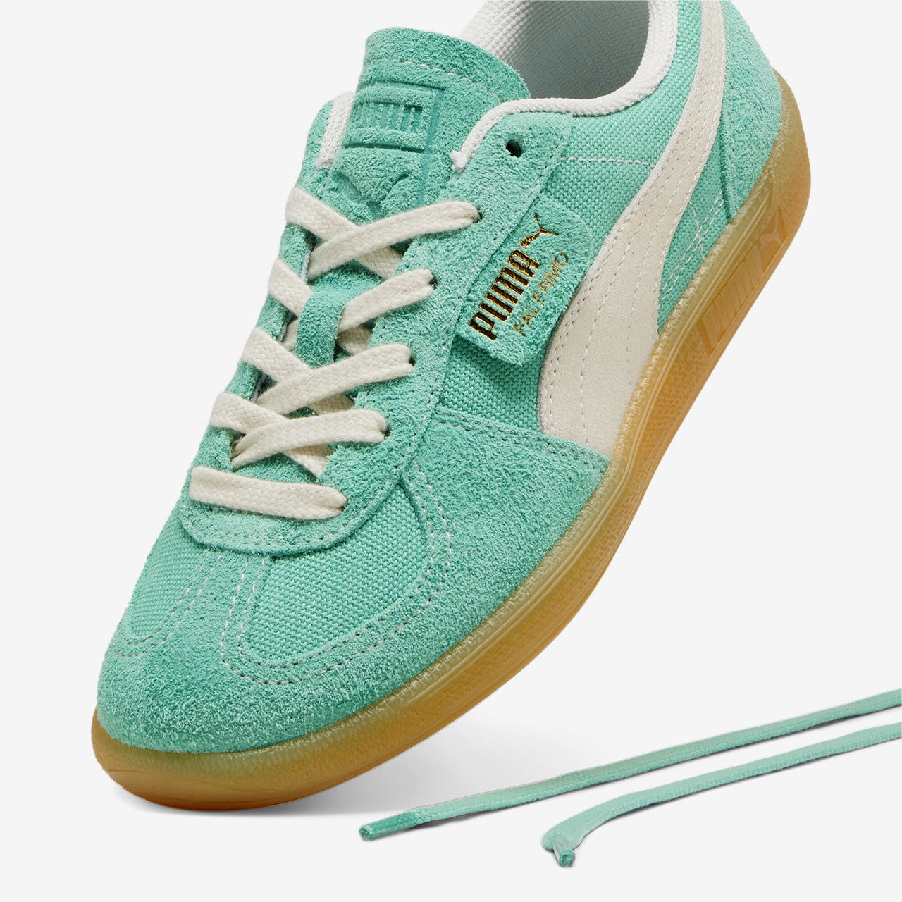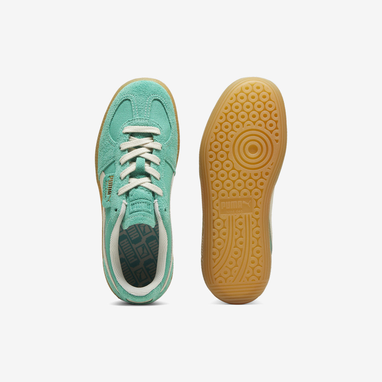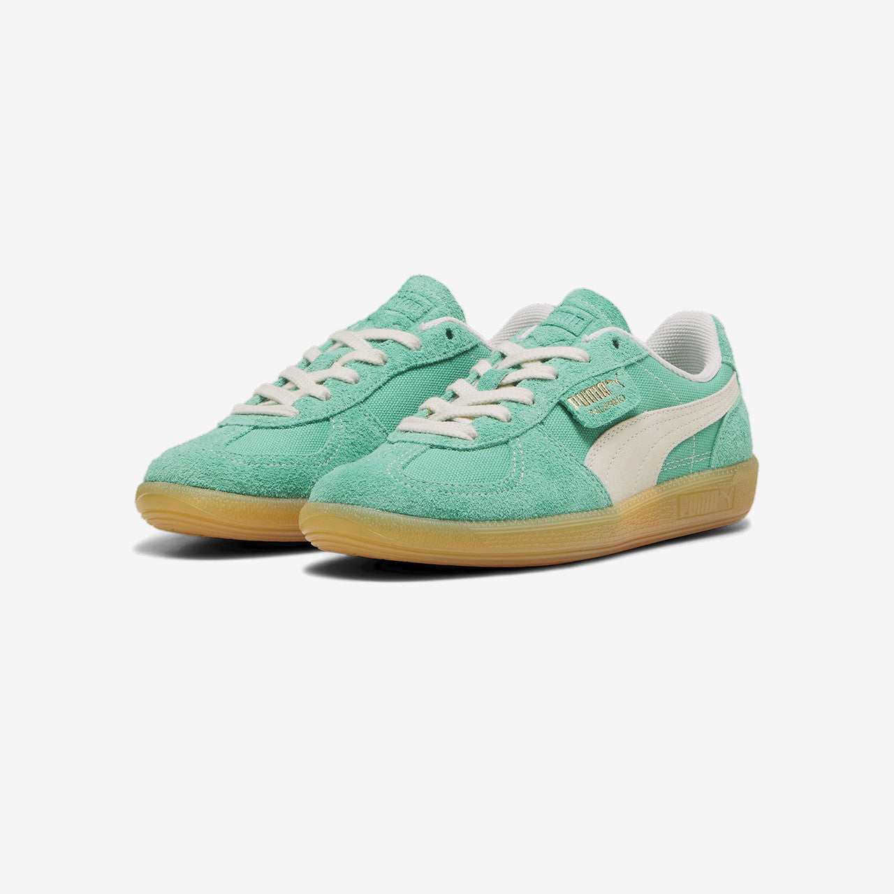 Lace up in an icon with the Puma Palermo Vintage. Yet another classic to return from Puma's archives, the Palermo Vintage originally debuted in the 80's and is now back in a "Jade" colourway, combining its signature T-toe construction and classic gum sole with a premium textile upper and plush suede overlays.