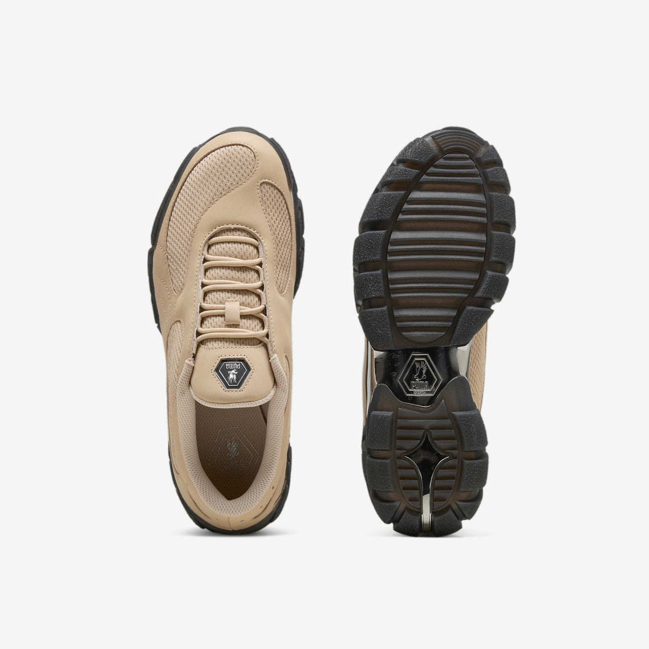 PUMA & Sketpa link up once again to introduce the Skope Forever NBK "Black Ice," expanding on SK's first signature silhouette which was first released earlier this year. Coated in natural tones throughout the upper, the PUMA x Skepta Skope Forever NBK combines an open mesh base with premium leather overlays and a stitched Formstrip on the sidewall, while the co-branded tongue label and metallic silver plates on the midfoot and rear showcase the signature cat and eagle logos, rounding off the design in true SK style.