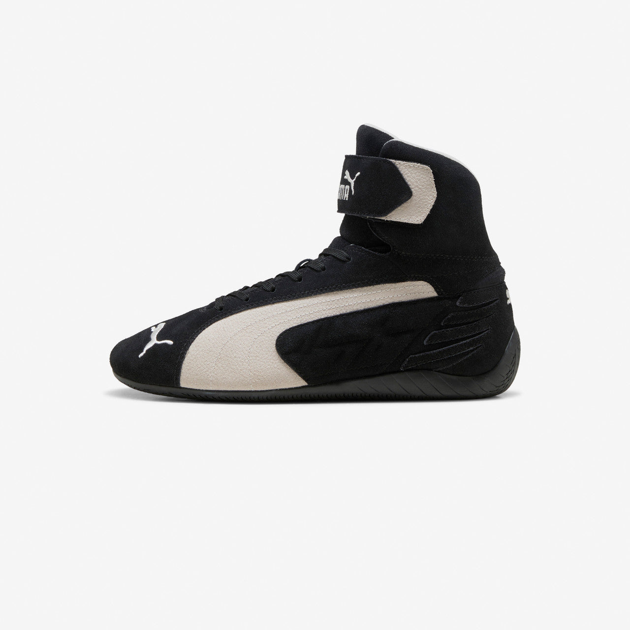 After making its long-awaited return last year, the iconic PUMA Speedcat arrives in a brand-new mid-boot style cut. But trust us, there's nothing "mid" about this sneaker at all. Maintaining its signature racetrack-inspired design, the PUMA Speedcat Mid continues to stand out from the crowd with its distinct shape and sleek lines that look fast and bold while offering enhanced comfort and support, thanks to the newly introduced hook-and-loop closure on the ankle and a durable rubber outsole.