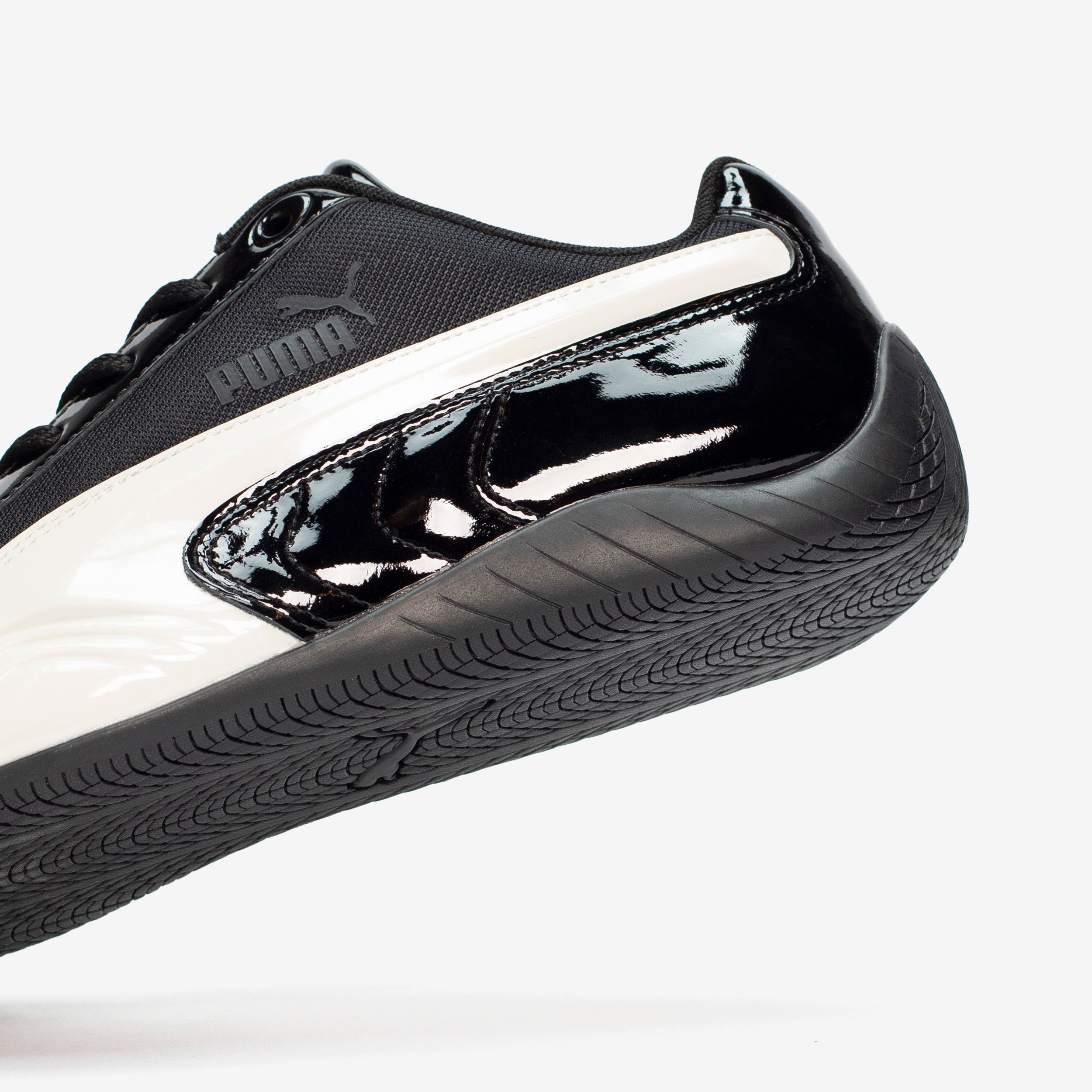 We’ve reunited with PUMA to introduce a fresh take on a cult classic: the Speedcat. Born in 1999, our elevated take on the PUMA Speedcat nods to early 2000s designs that fused motorsport, football, and high fashion into one clean, sculpted form. With a premium OG colorway, the SNS x PUMA Speedcat features patent leather overlays, special eyelets, a molded patent Formstrip, and gunmetal lace tips—bringing a high-shine, and throw-back vibe to a modern silhouette built for everyday movement. A tonal nylon base, tonal SNS and PUMA logos, and no suede in sight complete the clean, futuristic look.