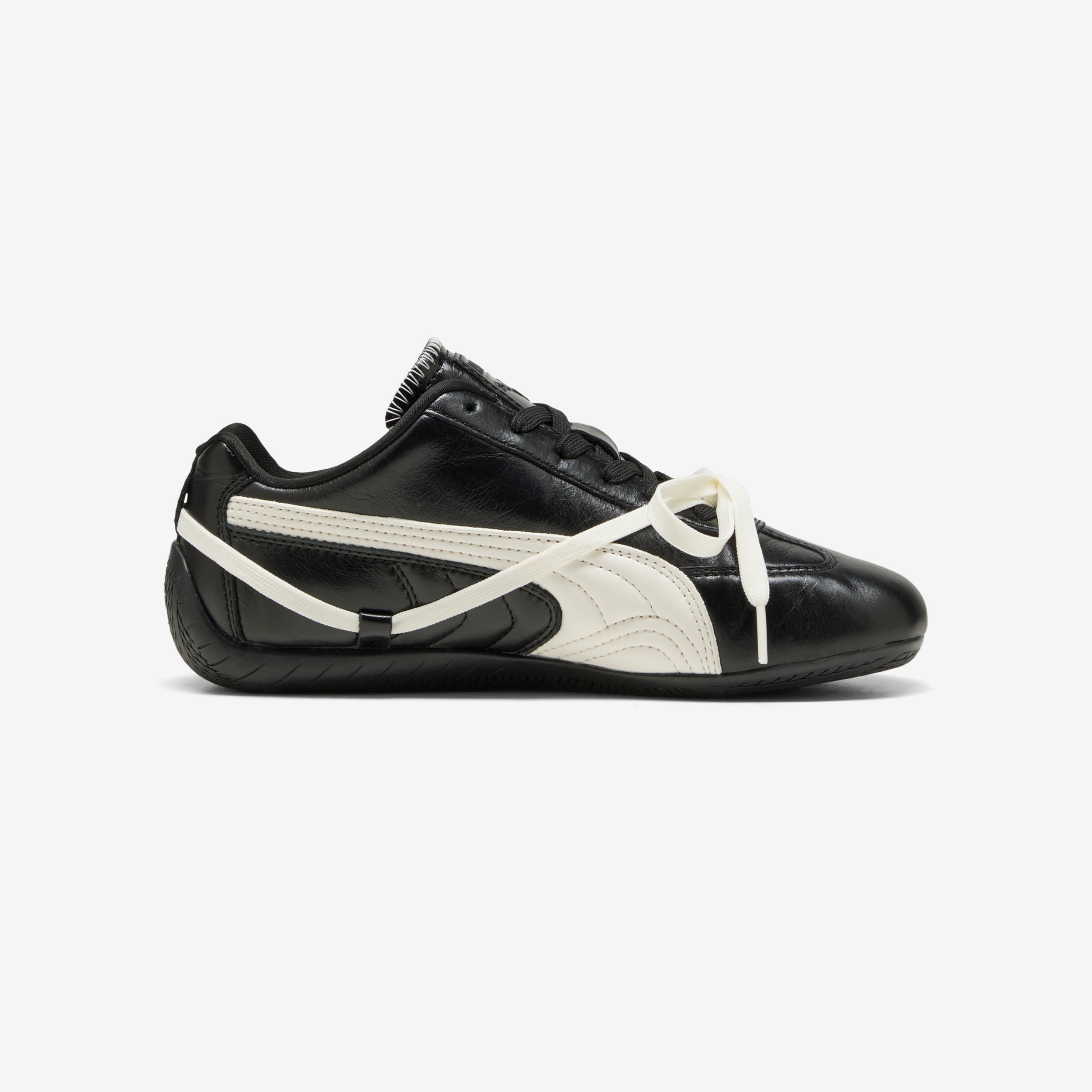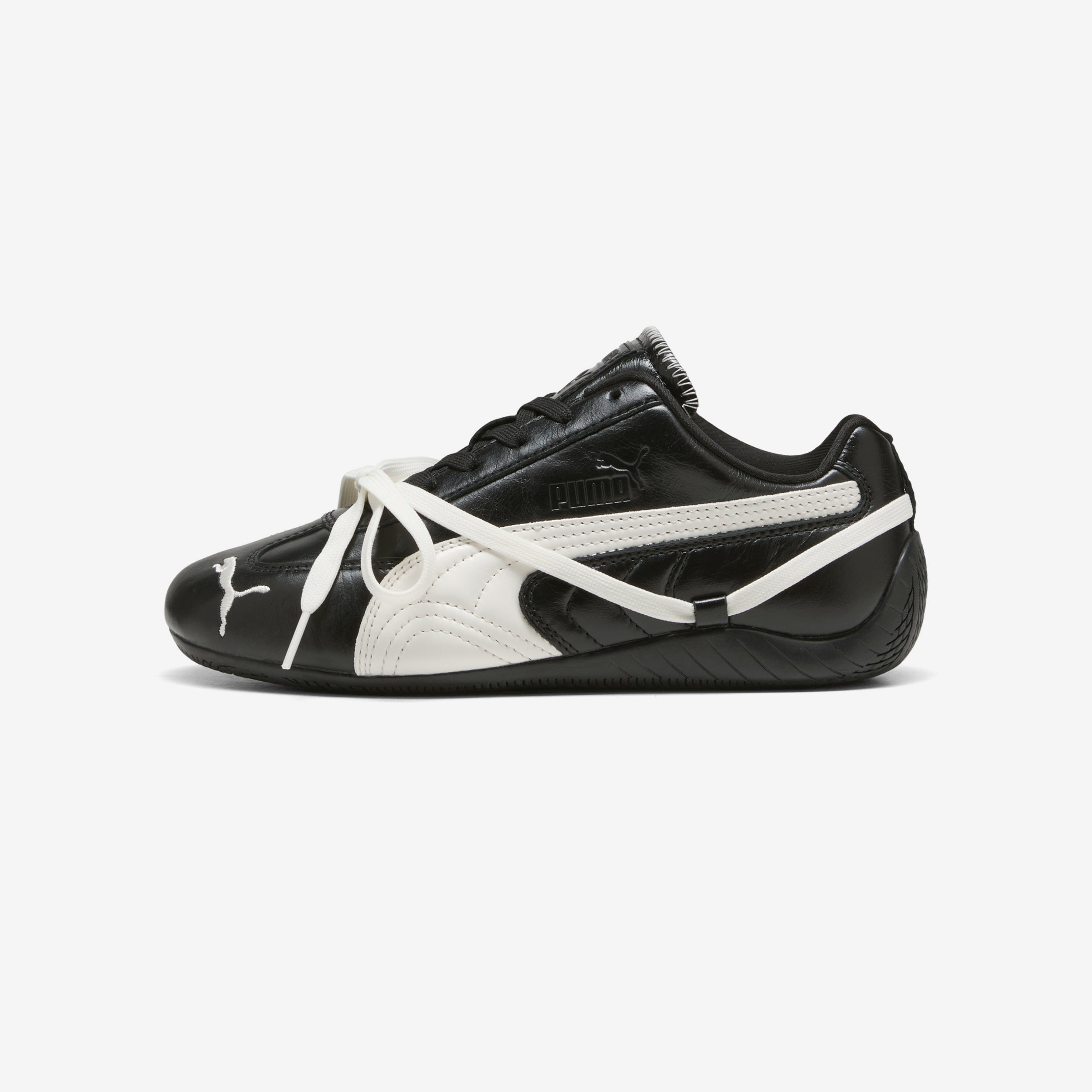 Designed to inspire everyone to peel back their layers, explore their style, and embrace their truest selves, PUMA comes together with Rosé to bloom the iconic PUMA Speedcat—reimagining the racing-inspired silhouette through Rosé-colored lenses. Blossoming with Rosé’s personal taste and aesthetics, this PUMA Speedcat PRM keeps the OG's design intact, pairing a leather and textile upper with lace ribbon loops above the midsole and an embroidered PUMA Cat logo near the toe. Finishing the design, a co-branded ROSIE logo hits the tongue and insole, paying homage to Rosé's nickname and the title of her debut album.