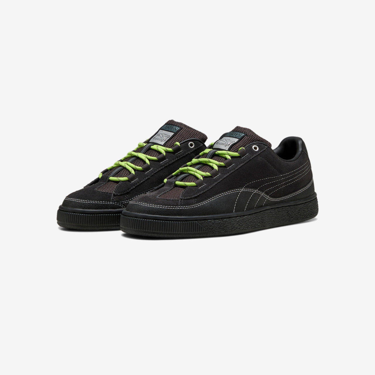 As part of their latest disruptive collection, Puma & Aries introduces a modernized take on an icon from the German footwear brand's rich heritage: the Puma Suede. Coated in plush black suede throughout the upper, the Puma Suede HP, in collaboration with Aries, features an added wavy panel seamlessly blending with the upper and sole unit alongside white contrast stitching and creative co-branded detailing.