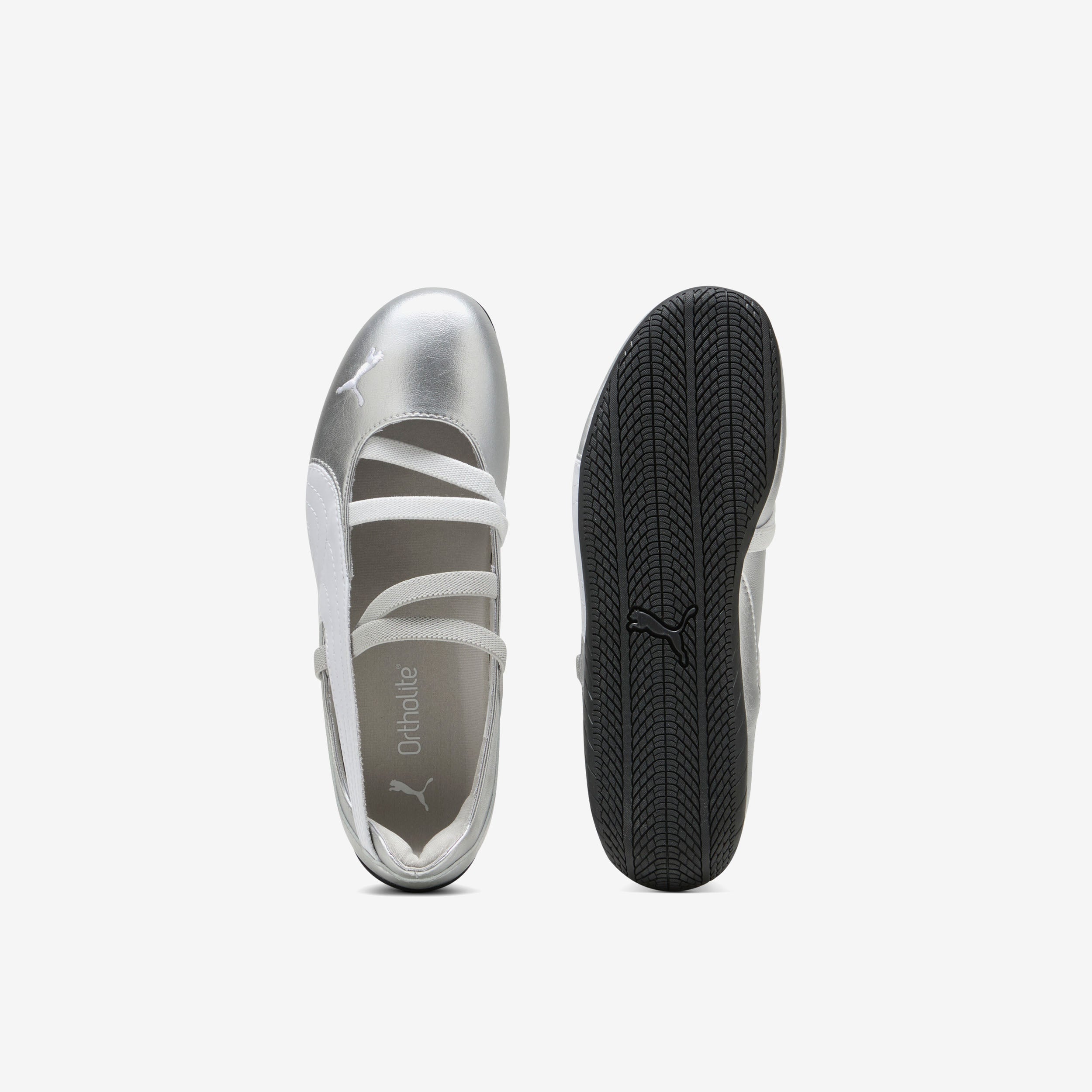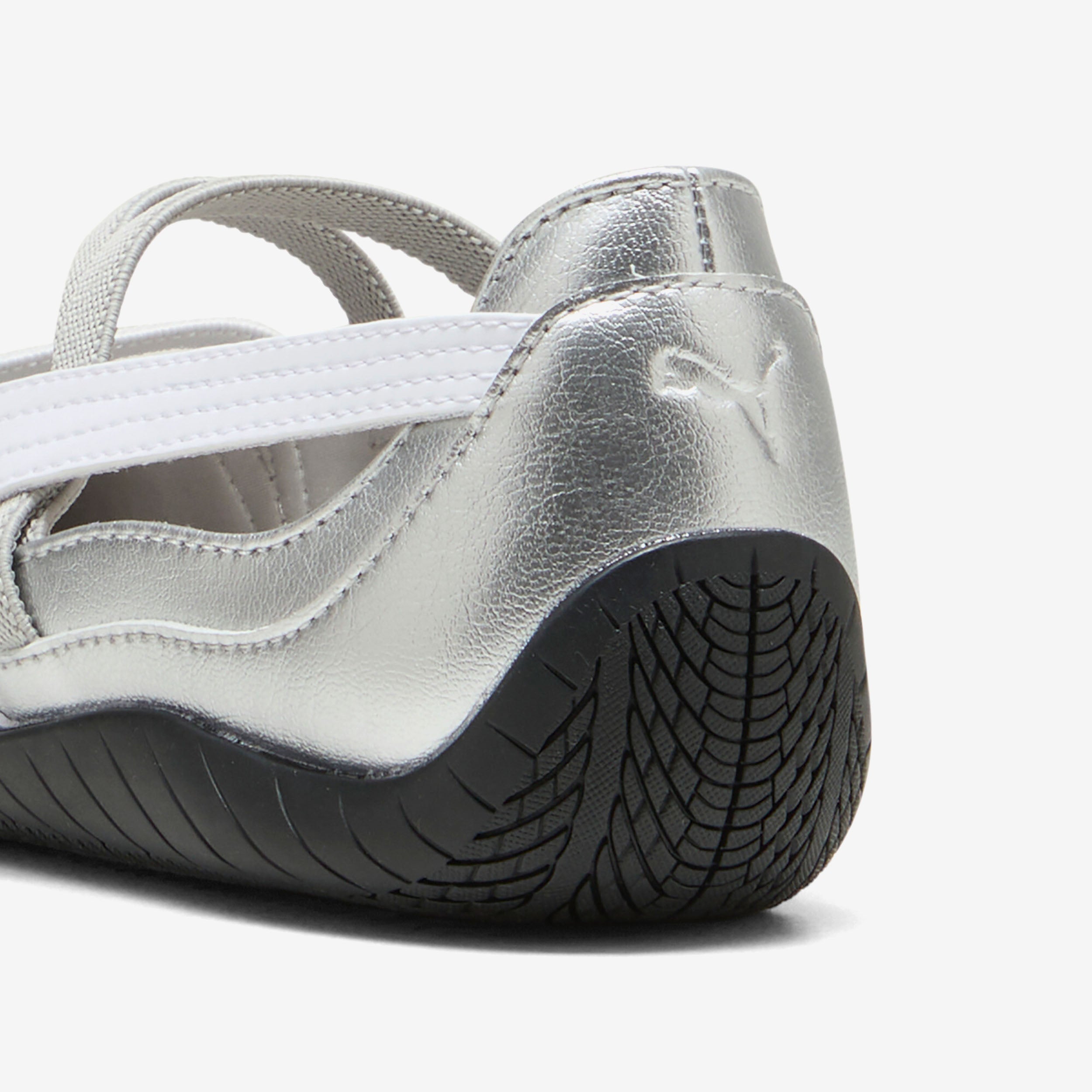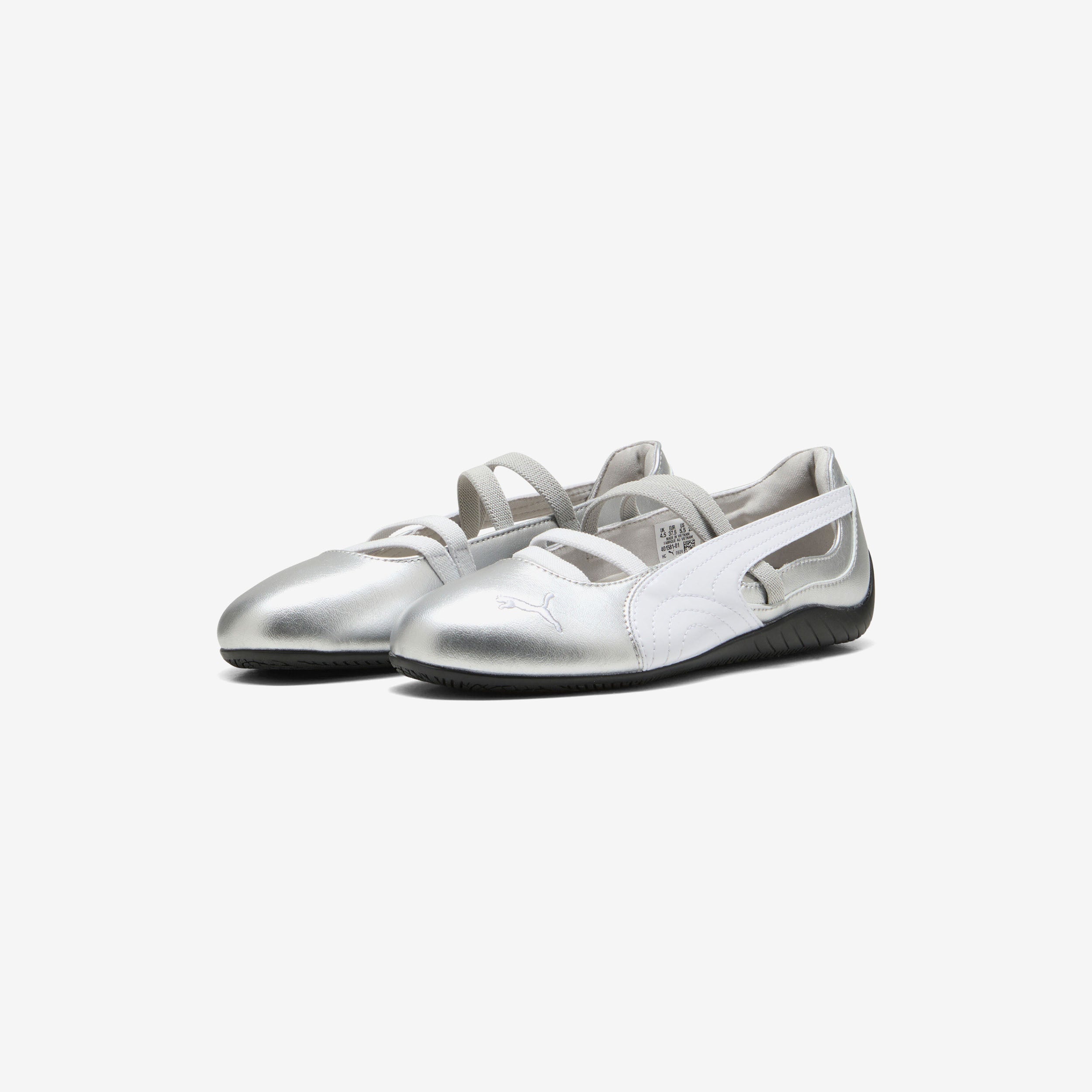 Inspired by the velocity of the racetrack, the PUMA Speedcat Ballet rewrites motorsports history with a brand-new iteration of the iconic Speedcat, taking inspiration from classic ballet flats. Featuring a metallic upper, embroidered PUMA cat, and elastic bands for a snug fit, the PUMA Speedcat Ballet transforms an icon of racing culture with a chic slip-on construction, serving up effortless track-turned-street style.
