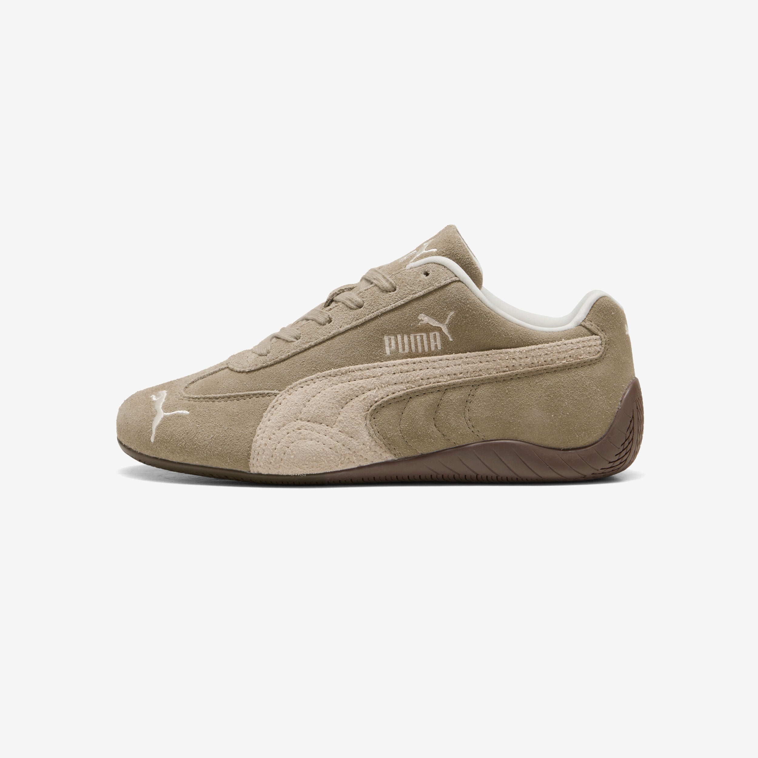 The women's PUMA Speedcat Elevated brings a new lease of life to a racing-inspired icon. Boasting its signature ultra-slim design, this pair features a plush suede upper with a cozy mesh lining for complete comfort, whether you're hitting the pedals on the track or exploring the streets. Finished with distinct PUMA logos embroidered upper sidewall, toe area, tongue, and heel counter.