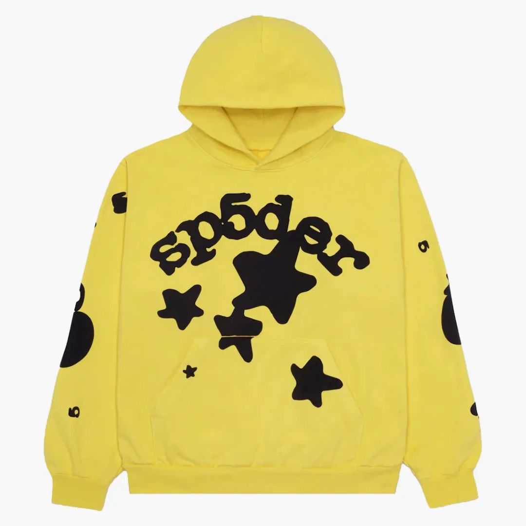 Discover the SP5der Beluga Hoodie Gold-a brave, stylish addition to every streetwear wardrobe. Dominant in gold, this hoodie combines elegance with casual comfort. Made from a robust cotton polyester mixture, it impresses with durability and breathability. The classic cut with kangaroo bag and adjustable hooded tray offers practicality, while ribbed cuffs give structure. Particularly noteworthy are the high-contrast star graphics and the striking SP5der logo in black, which give this hoodie a special recognition value. Published for the first time on March 22, 2023, he is a must-have for trend-conscious.Authenticity Guaranteed