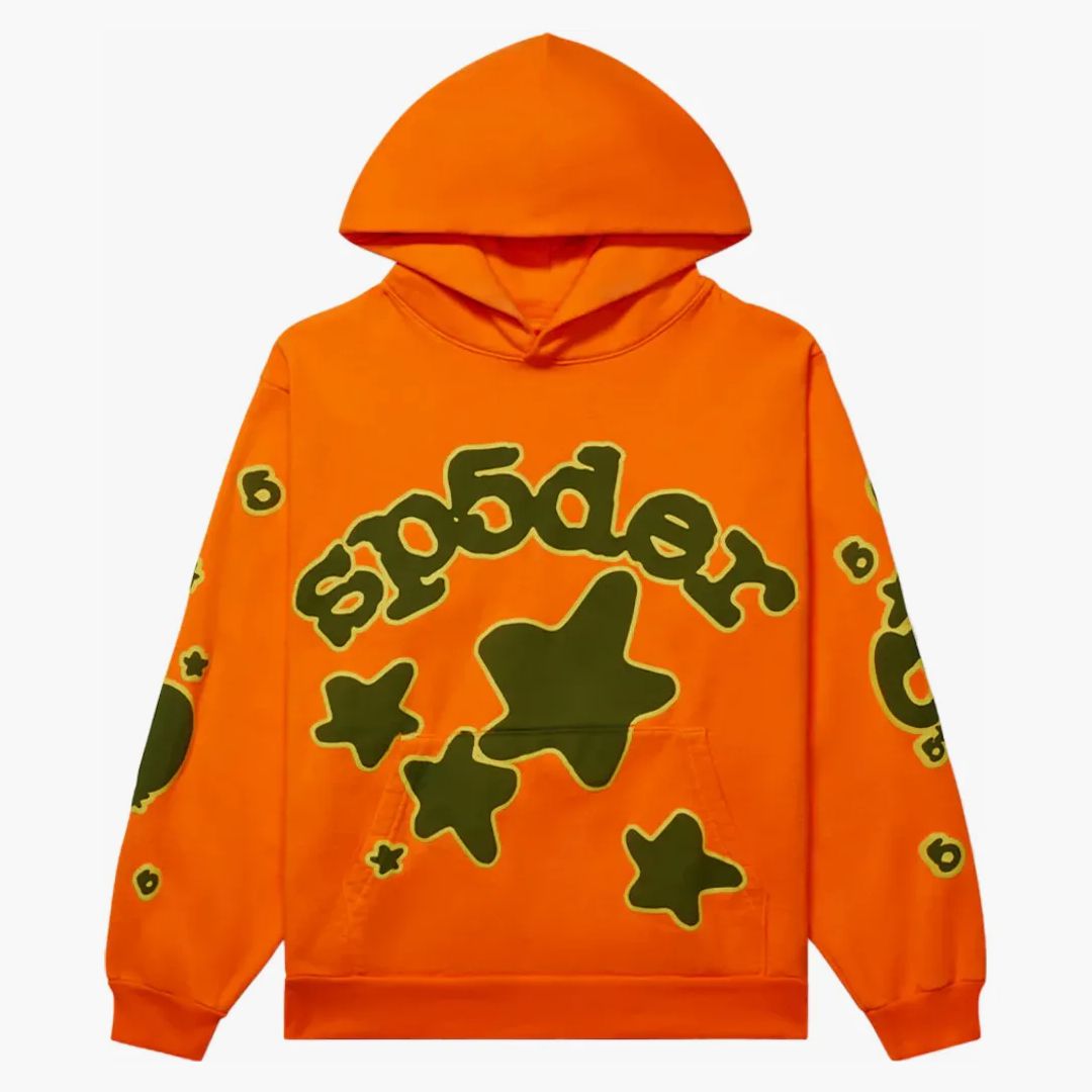 The SP5der Beluga Hoodie Orange is more than just a hoodie-it is a tribute to iconic streetwear design. Holded in a lively orange tone, the hoodie is highlighted on the chest by the marked lettering of the brand. The color composition made of hunting green and bright yellow gives the design a special charm. Under the name there are five different sizes that bring additional details into play. A practical kangaroo bag design on the front offers functionality. The sleeves are also stylishly provided with smaller 5-series and stars to create a consistent design concept. This statement piece, which was launched on December 6, 2023, bravely stands out from the crowd and combines bold aesthetics with an urban source of inspiration.Authenticity Guaranteed