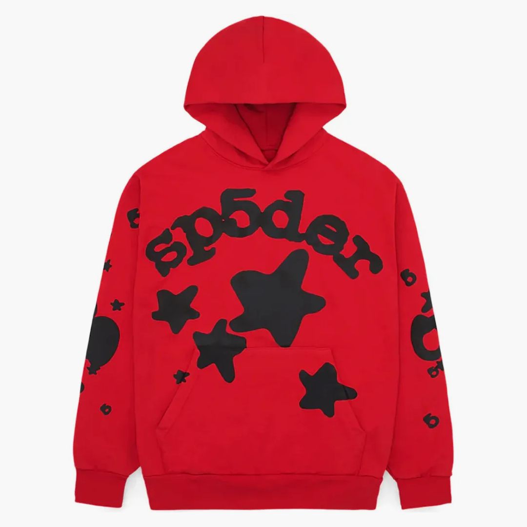 The SP5der Beluga Hoodie Red combines comfort and striking design. This version of the hoodovers impresses with a strong red that dominates the entire silhouette. On the chest, the SP5der logo stands out in a characteristic black typography, supplemented by five stars of different sizes. The sleeves and elbows adorn other black details, while the practical kangaroo bags offer space for everything important. This model embodies the characteristic artistic boldness of SP5der and skilfully stands out in the urban fashion world. Originally published at the price of $ 200, the hoodie is a must for streetwear lovers.Authenticity Guaranteed