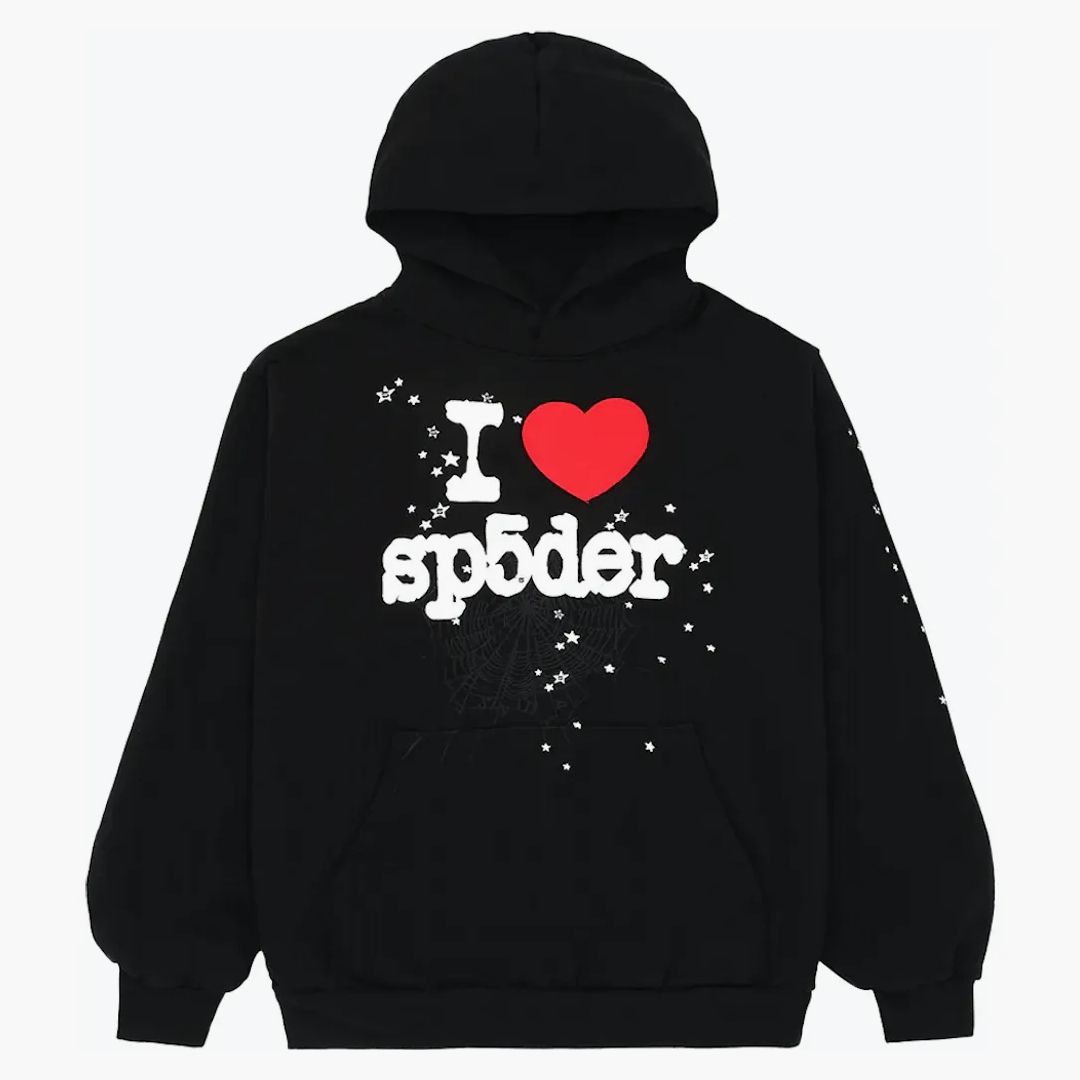 The SP5der I Heart Sp5 Hoodie Black combines urban street style with comfort and durability, ideal for everyday life. Made from a high-quality cotton polyester mixture, it keeps warm and is also breathable, perfect for different weather conditions. The predominantly black design gives a timeless elegance, while hoods with a cord strain and kangaroo pocket set classic accents. The relaxed cut, the ribbed cuffs and the hem offer a casual silhouette. The 'i Heart Sp5der' motif in contrasting red tones on the front is particularly striking. Originally published in October 2023.Authenticity Guaranteed