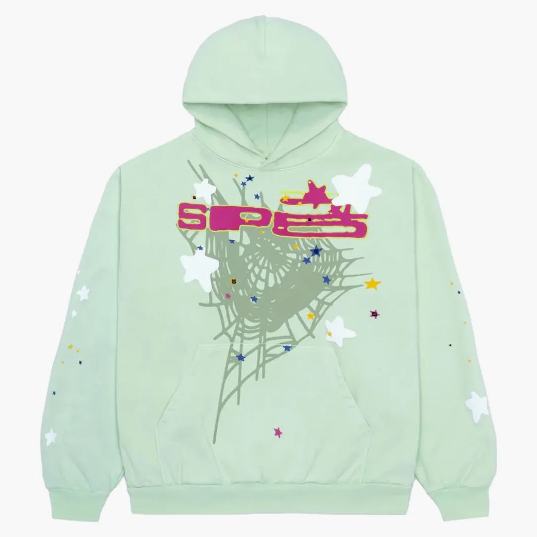 The SP5der SP5 Mint Hoodie Mint is a work of art made of high-quality fleece fabric that is manufactured in the USA and is known for its softness and durability. The remarkable puff print in connection with a discharge print ensures a visual experience of the extra class. Placed on the front, the striking SP5 text design and the network and star motifs attract everyone. Note that with proper care, slight changes in the pressure interface can still occur. A striking piece that should not be missing in any collection.Authenticity Guaranteed