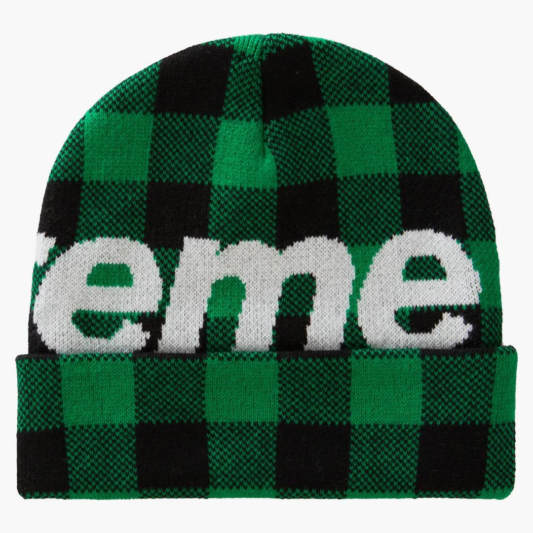 Supreme Big Logo Beanie (FW20) Green Plaid