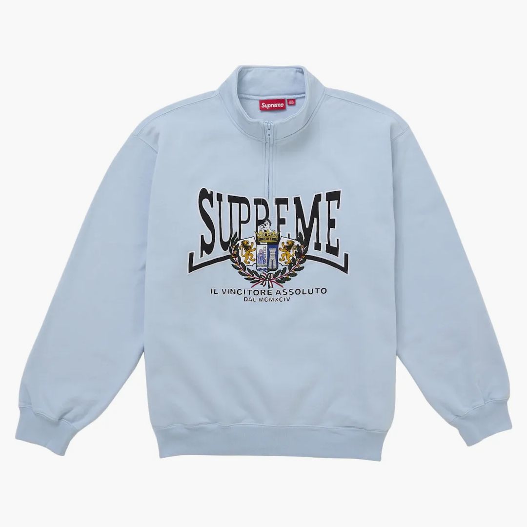 Supreme Crest Applique Half Zip Pullover Light Blue