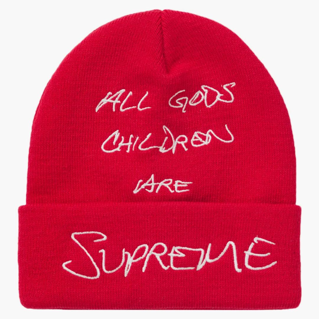 The Supreme God's Children Beanie in red is the epitome of casual streetwear style. This accessory made from high -quality materials offers both comfort and a striking look. It is perfectly suitable for giving every outfit a special note. The fine processing and the iconic logo of the brand make this Beanie a must for fashion enthusiasts. Regardless of whether for the cold days or as a stylish statement piece-this beanie fits seamlessly into the cloakroom and sets trendy accents. Discover the Supreme Beanie and lift yourself fashionably from the crowd.Authenticity Guaranteed