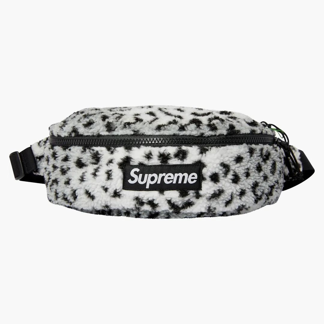 The Supreme Leopard Fleece Waist Bag in white is much more than a simple accessory. With its striking Leopard print and its high-quality fleece processing, she combines style and expediency in an incomparable way. Ideal for the urban adventurer, it offers enough space for all important objects, while the durability masters even the most dynamic everyday life with flying colors. The minimalist, white design makes it easy to combine this belt bag with almost every outfit. This bag convinces with trendy elegance and practical functionality-a real highlight for every fashion ensemble.Authenticity Guaranteed