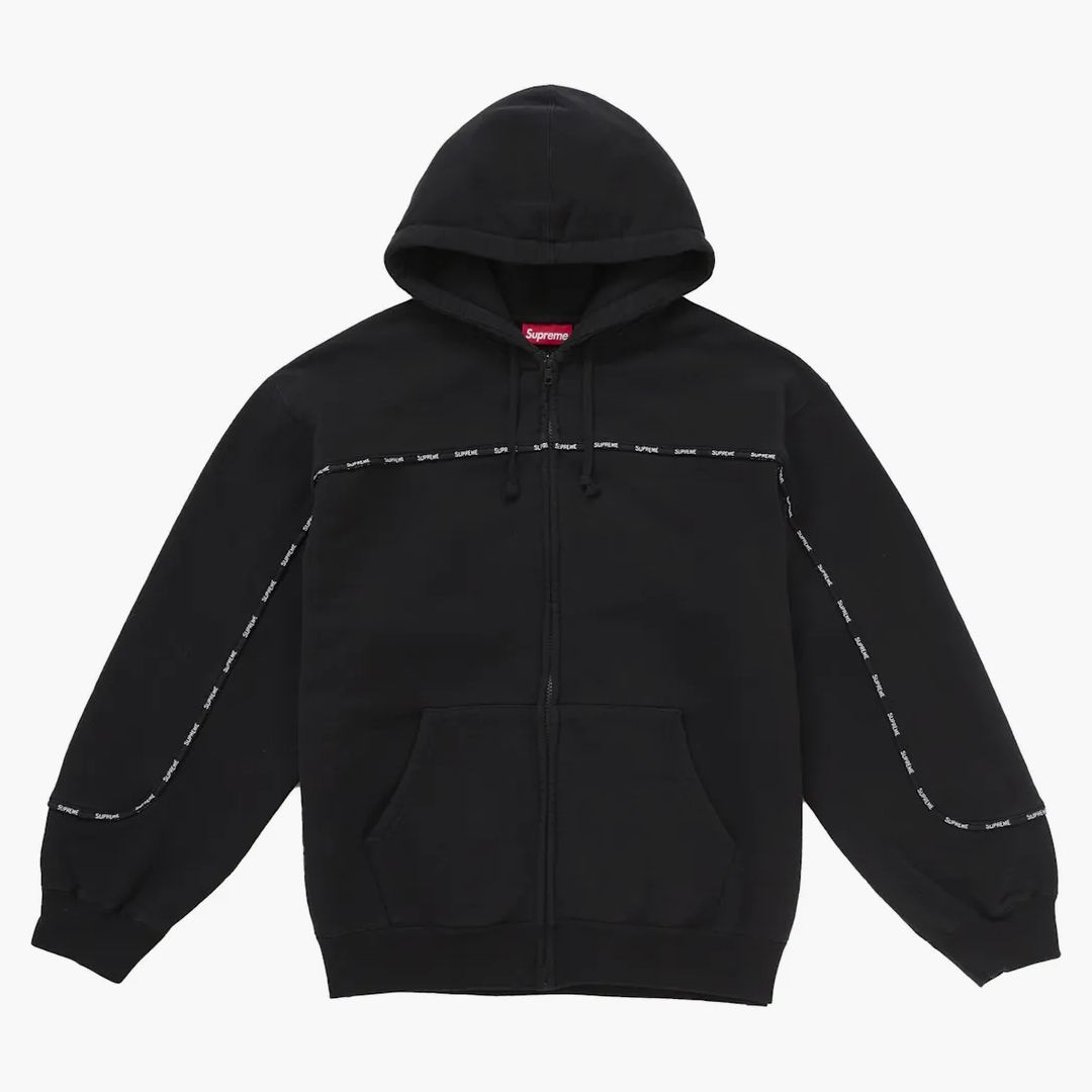 Supreme Piping Zip Up Hooded Sweatshirt Black