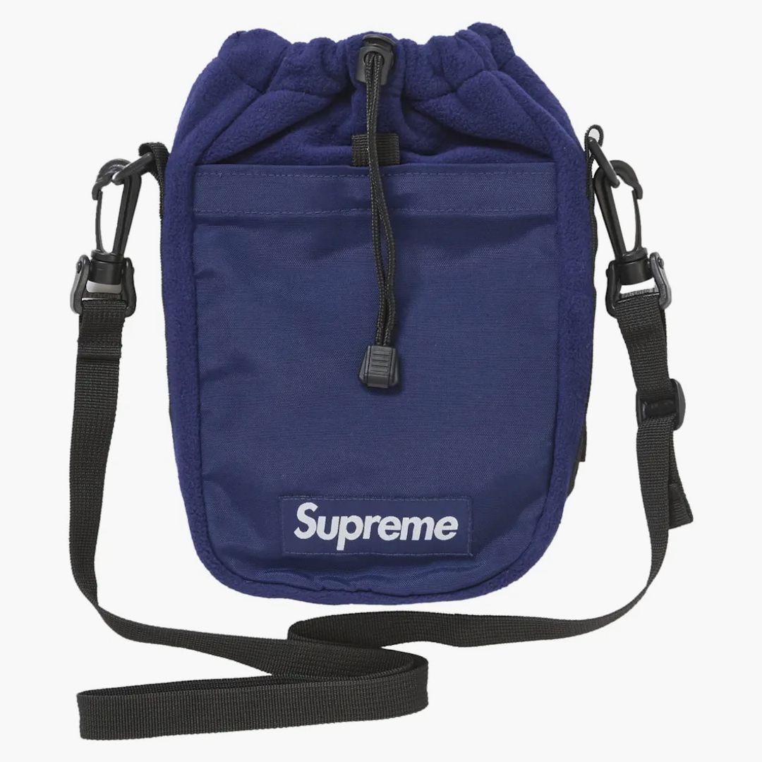 The Supreme Polartec Sling Bag in Navy combines timeless style with urban functionality. This versatile bag, designed by Supreme, impresses with its high-quality polartec material, which is known for its durability and resilience. Ideal for daily use, it offers plenty of storage space for essentials without compromising aesthetics. The elegant color in navy ensures a modern look, while adjustable shoulder straps ensure optimal comfort. Perfect to give every outfit the necessary touch of streetwear coolness.Authenticity Guaranteed
