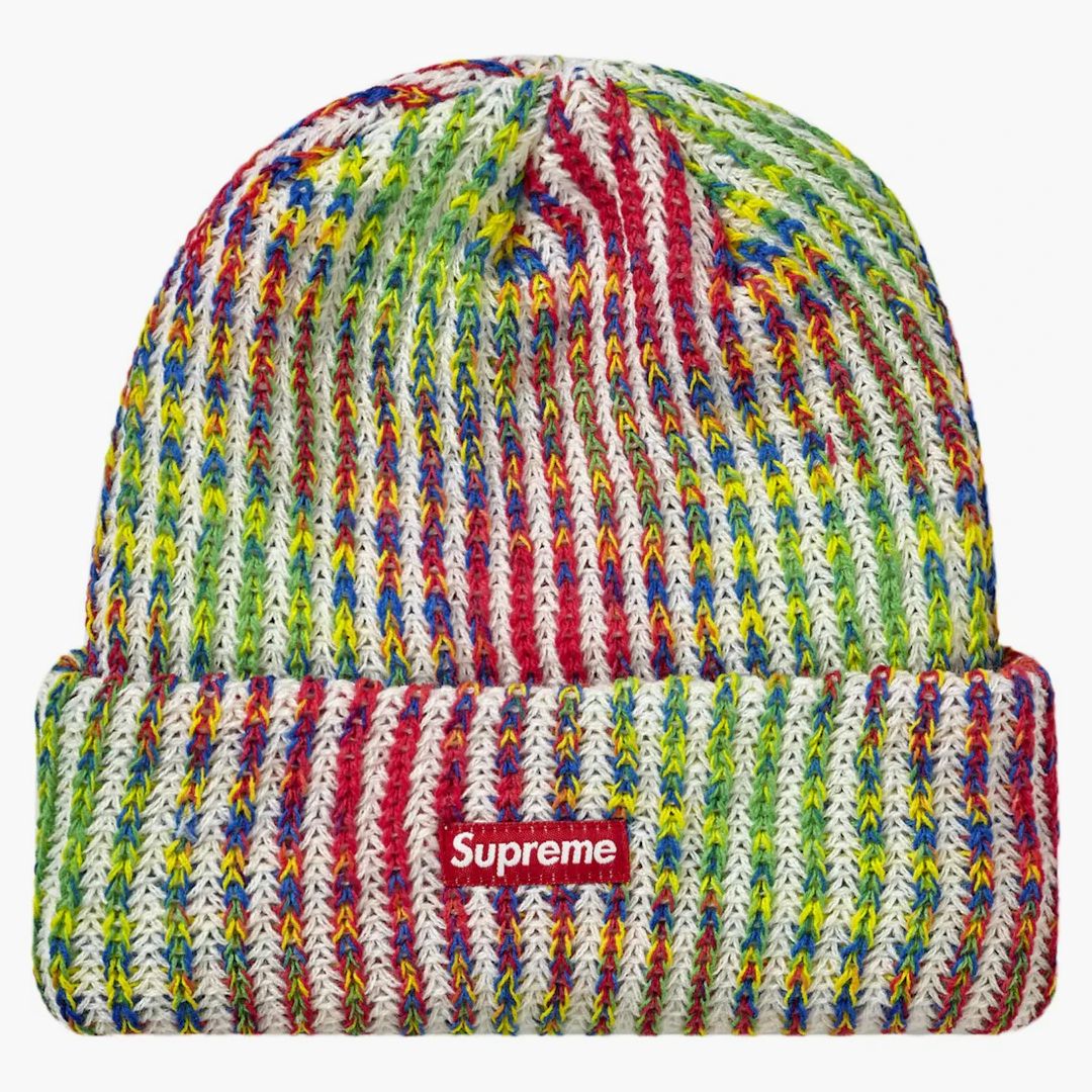 Supreme Rainbow Knit Loose Gauge Beanie (FW21) White