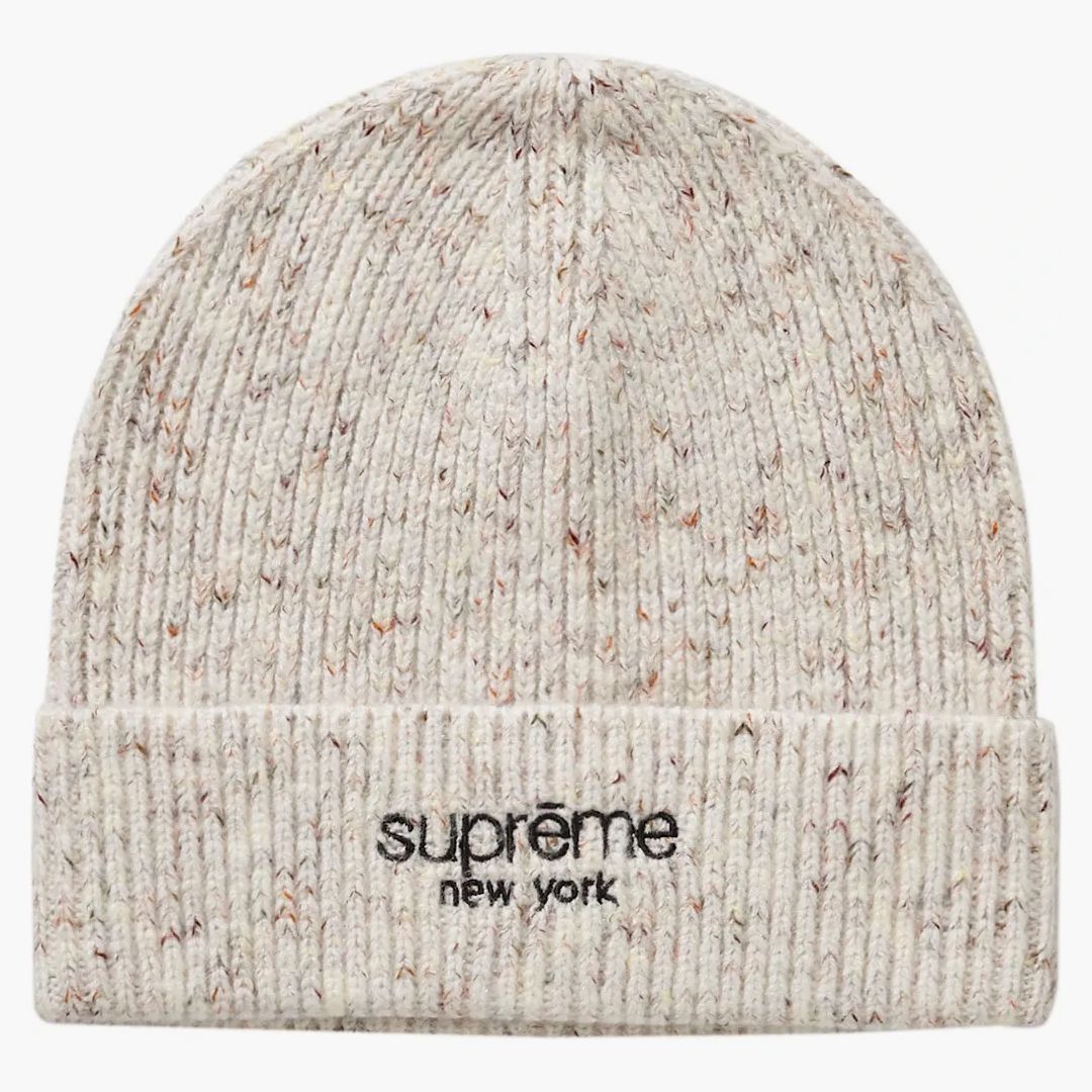 The Supreme Rainbow Speckle Beanie in white combines stylish simplicity with a rainbow-like color spray look. Perfect for cool days, this accessory not only offers heat, but also a unique style that upgrades every outfit. Made from high-quality materials, this hat is the ideal statement piece for everyone who value exclusive streetwear. Regardless of whether you are wearing it on the way to work or in your free time, it is a must for every fashion enthusiast who appreciates the cult brand Supreme.Authenticity Guaranteed
