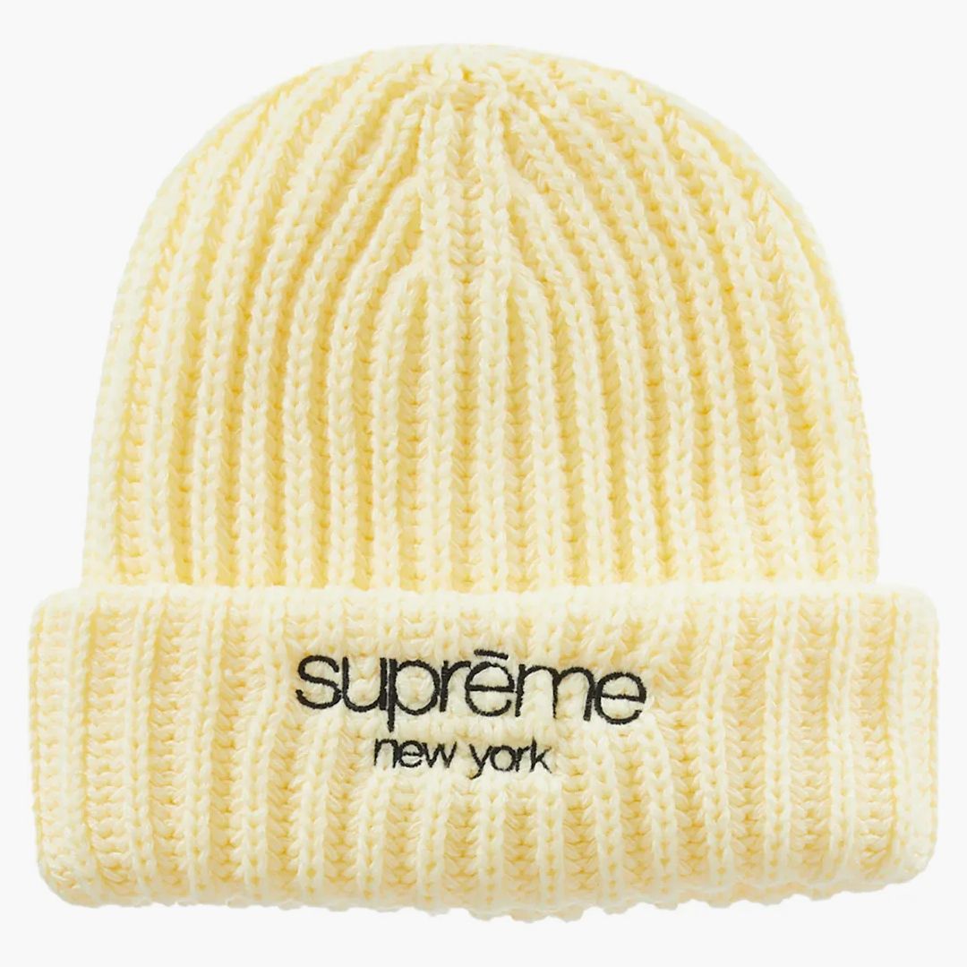 The Supreme Ribbed Beanie in the elegant cream color variant from the autumn/winter 22 collection is an indispensable accessory for cool days. Made of high quality, ribbed material, this hat not only offers warmth, but also sets a fashionable accent. The supreme logo is subtly incorporated and gives the Beanie its characteristic style. Ideal for everyone who value quality and design is this hat a must-have for every streetwear lover. Discover timeless comfort and stylish appearance with this exclusive accessory.Authenticity Guaranteed