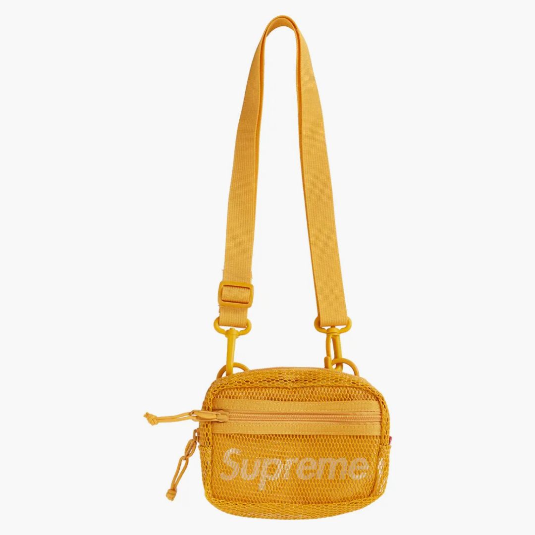 Discover the exclusive Supreme Small Shoulder Bag in bright gold, a highlight of spring/summer collection 2020. This elegant bag, made of hard-wearing cordura fabric, not only offers longevity, but also style. The PVC-coated network fabric gives the bag a modern appearance, while the reflective 3M supreme logo is a real eye-catcher. Compact and yet spacious, it is the perfect companion for on the go. Available in several colors, but especially in gold a noble choice for everyone who wants to set a statement.Authenticity Guaranteed