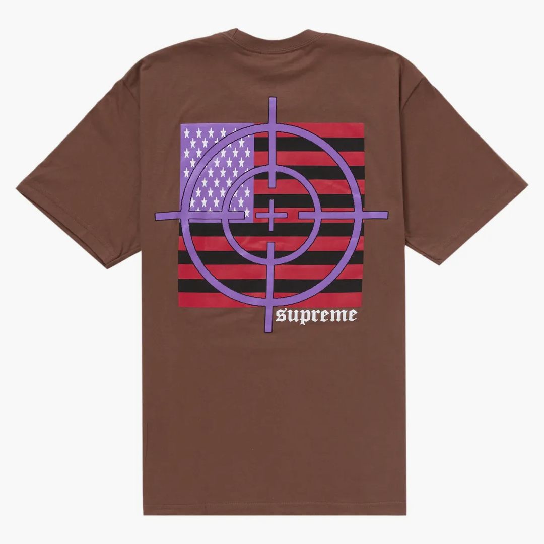 Das Supreme Target Tee in Braun bringt den unverkennbaren urbanen Stil direkt in die Garderobe. Mit einem schnörkellosen und dennoch markanten Design überzeugt dieses T-Shirt mit seiner lässigen Eleganz. Supreme, als angesehene Streetwear-Marke bekannt, liefert mit diesem Piece ein Qualitätsversprechen, das Modebegeisterte weltweit schätzen. Ideal zu kombinieren mit angesagten Sneakern und Accessoires, bietet das Shirt endlose Styling-Möglichkeiten. Hochwertige Materialien treffen auf zeitloses Design - ein Must-have für alle, die sich authentisch kleiden möchten.Authenticity Guaranteed