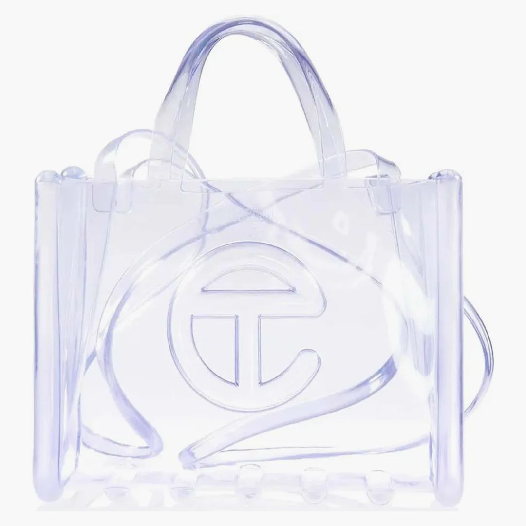 Discover the unique fusion of design and function with the Telfar X Melissa Medium Jelly Shopper Clear. This luxurious bag seamlessly connects the iconic style of Telfar with the artistic interpretation of Melissa. Made of transparent, flexible material, this shopper offers a stylish way to transport your essentials. Perfect for everyday life, the Jelly Shopper not only causes a sensation, but is also particularly easy to care for. A practical dust protection bag is included so that your accessory always remains flawless. A must-have for everyone who appreciates style and elegance.Authenticity Guaranteed