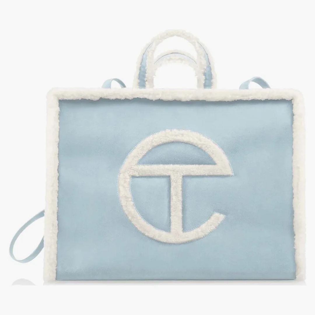 The Telfar X Ugg Shopping Bag in size Large and a fresh blue tone is more than just an accessory - it is a real statement. This spacious bag combines iconic telfar aesthetics with the unmistakable cuddlyness of UGG, which makes it a perfect choice for style-conscious city explorers. Equipped with a dust bag, it not only ensures fashionable accents, but also offers protection for its most important belongings. Discover the perfect combination of style and functionality and convince yourself of the outstanding quality and the unique design of this exclusive cooperation.Authenticity Guaranteed