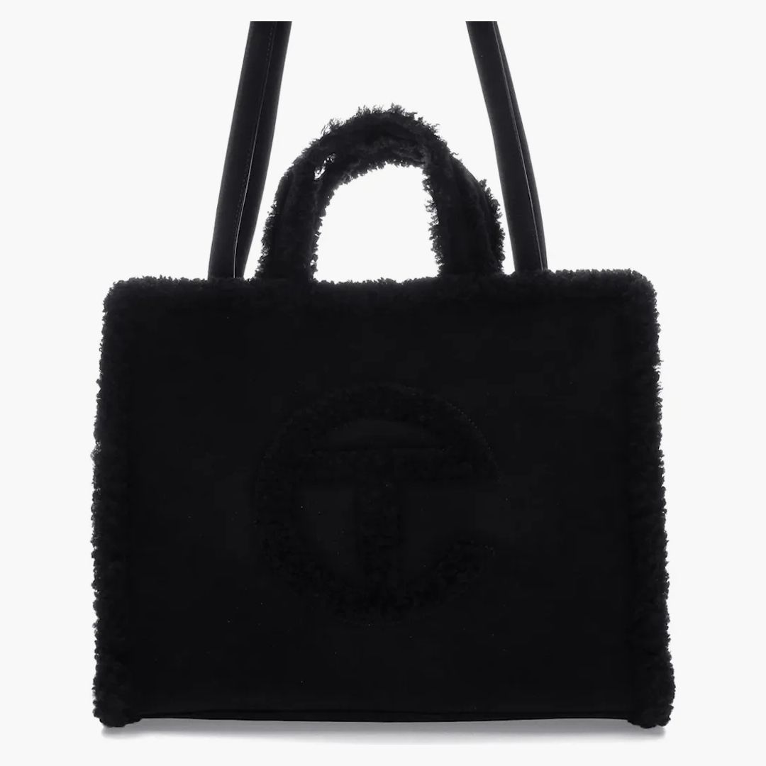 The Telfar X Ugg Shopping Bag in medium -sized black combines urban style with timeless elegance. This unmistakable bag is the result of an exciting collaboration between the Telfar and the UGG. It not only offers enough space for your essentials, but also sets a statement as a fashionable accessory. This bag comes with a practical dust bag to safely stow and protect it. The soft material and the simple design make you a versatile companion, no matter where the trip leads.Authenticity Guaranteed