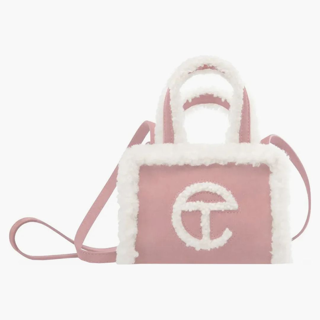 The Telfar X Ugg Shopping Bag Small Pink combines unmistakable style and ultimate comfort in a remarkable accessory. With its unmistakable color and the striking design, this bag is the perfect statement piece for every look. Although it is small in size, it offers enough space for all important things and is optimally protected by the supplied dust protection bag. Made from high -quality materials, it convinces with longevity and exclusive charm. A must for fashion enthusiasts who are looking for something extraordinary.Authenticity Guaranteed