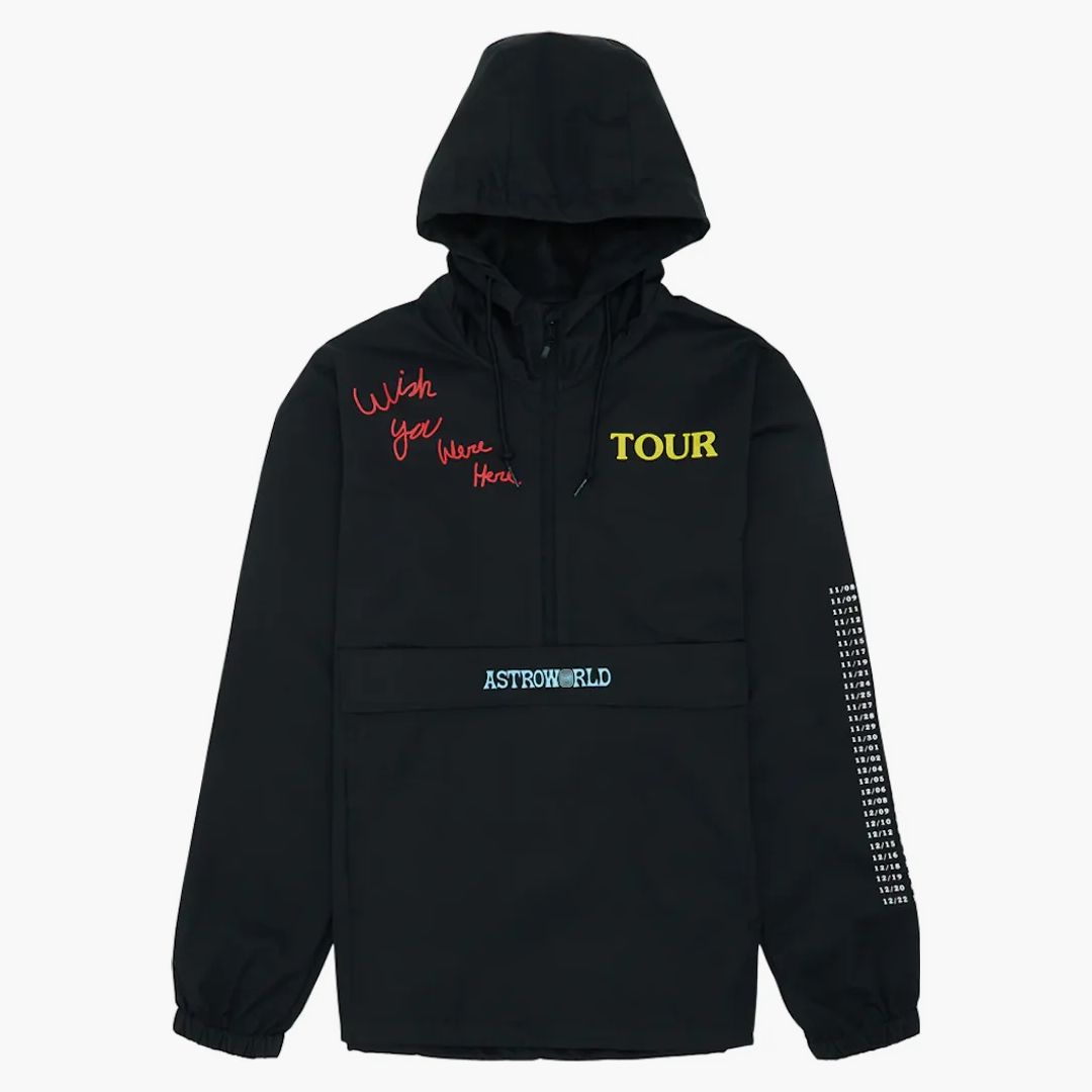The Travis Scott Astroworld Anorak in classic black is more than just a piece of clothing - it is a statement. The minimalist design, combined with striking details, makes this anorak a must-have for fashion enthusiasts. Made of high -quality materials, it ensures comfort and durability. Anorak offers reliable protection against wind and weather ideal for the transitional times. Wear a piece of music culture and show your enthusiasm for extraordinary fashion.Authenticity Guaranteed