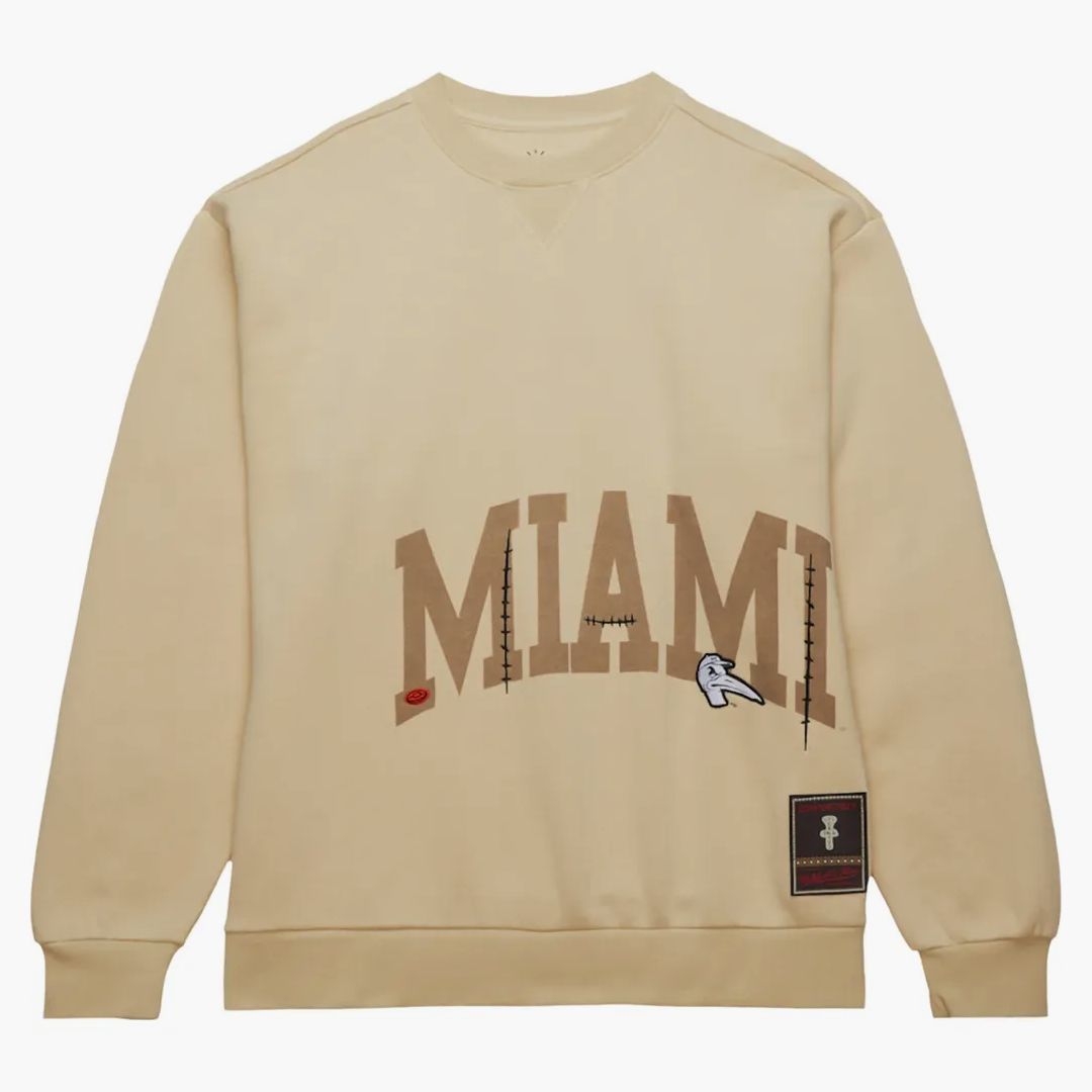 Travis Scott X Mitchell & Ness Miami Hurricanes Pullover Sweatshirt Tan